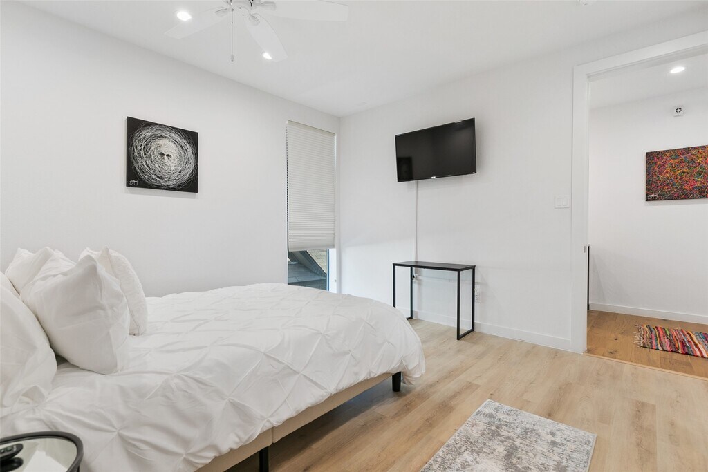 PREMIUM LOCATION near Downtown and Uptown Dallas. Ideal for large groups! Two full residences within one connected duplex. Each side: 4 bed/ 4 bath,full kitchen,rooftop and patio. All furnishings,kitchenware,linen included with the lease. High end design. Soaring metal and brick facade with glass railings and unique private outdoor spaces. Custom steel and wood stairs float above french oak hardwood floors draw you to the second story. MLS# 54279571