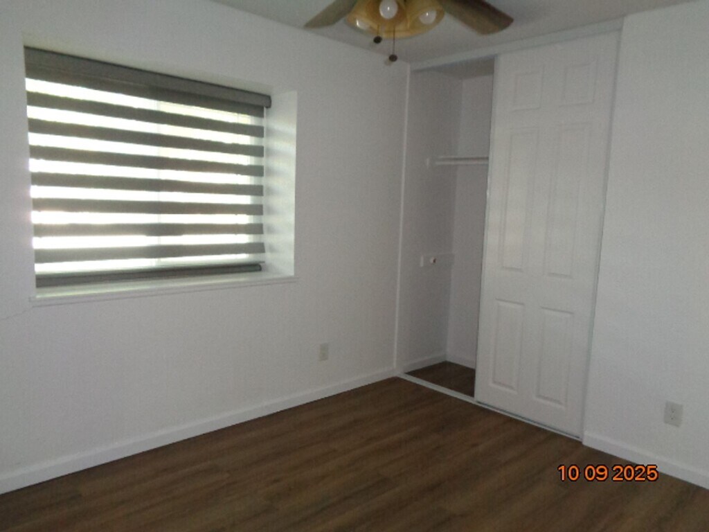 Modernized one story Harris home with inground pool and spa. This home offers 1134 sq. ft. and was built in 1985. Stylish laminate wood flooring and custom window coverings throughout the entire home. Comfortable living room with brick fireplace and built in shelves. Upgraded kitchen with granite countertops, new cabinets and stainless-steel appliances. Appliances include dishwasher and new gas range (to be installed). Both bathrooms have new vanities and custom tiled showers. Master bedroom has mirrored closet doors built in organizer and ceiling fan. Gas laundry hookups in the garage. Private backyard with covered patio and inground pool and spa. Owner prefers no pets but will consider subject to owner approval with an additional pet deposit to be determined. Owner pays for trash, pool and gardening services. 1 year lease required.