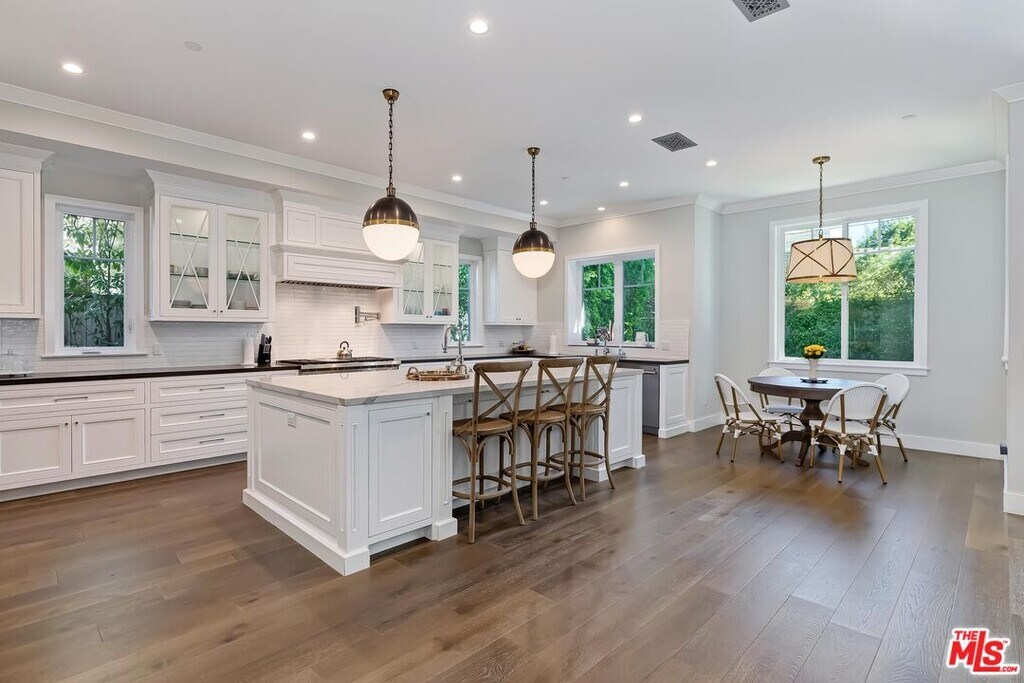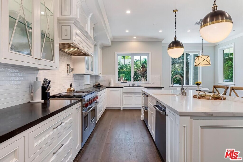 Eight years New gated Traditional 5 bedrooms + 5.5 bathrooms Smart home in the heart of Toluca Lake. Impeccably designed, this approximate 4,200 square foot home with European oak floors & exquisite finishes offers an open floor plan for ultimate indoor-outdoor California living. A gourmet Chef's dream kitchen with stunning island has stainless steel high-end appliances including built-in coffee maker and 2 dishwashers. The family room with fireplace and built-ins opens up completely to a lovely patio, landscaped private yard, redwood tree, built-in BBQ, pool and spa. The Primary bedroom offers vaulted ceilings, 2 walk-in closets, sitting area, built-ins with subzero fridge, fireplace, surround sound system, spacious private covered balcony and bathroom with double vanities, free standing tub and expansive rain shower. All the other 4 bedrooms have bathrooms ensuite. Extra features include home office, wine room, large upstairs laundry room and direct entrance 2 car garage. Walking distance to Lakeside Golf Club, Toluca Lake Village, Warner Bros., Disney and Universal Studios with easy access to freeways, downtown and westside. MLS# 25603829