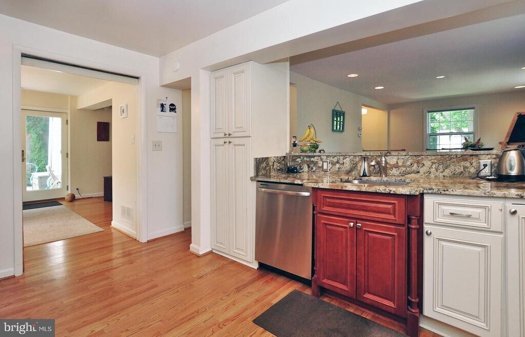 WALK TO METRO & downtown Beth. This updated 4 BR, 2 full & 2 half ba home has a bright, open 1st floor featuring a foyer with coat closet, living room with fireplace, separate dining room,ffabulous kitchen, familiy room, den and laundry room. The kitchen has been updated with 42 inch cabinets, granite countertops, stainless steel appliances , recessed lighting and breakfast bar that opens to a large separate dining room. The living room features a fireplace. The family room off the kitchen has recessed lighting with two large glass French Doors leading to a private slate patio and stone retaining walls for leisurely entertaining. The first floor den has it's own private powder room. There is a first floor laundry room with a 2nd powder room and exit. The two-story add. provides an upper master suite with dressing area with closets and built-ins and a large master bathroom with separate shower and soaking tub. The lower level is finished with a play room/recreation room and large storage area. This home is available for a 2-3 year lease.