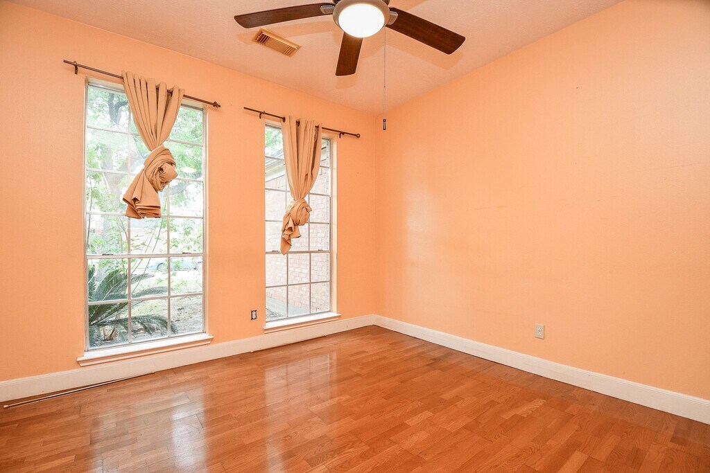 Beautifully maintained 4-bedroom,3-bath home with a 2-car garage in Teal Run,conveniently located with easy access to the Medical Center and Downtown Houston. This home features high ceilings and a versatile extra room that can serve as an office or formal living space. The spacious primary suite is located downstairs and includes a large soaking tub with a separate shower. The kitchen is equipped with granite countertops,and ceiling fans are installed throughout the home for added comfort. Upstairs,you’ll find three generously sized bedrooms. Additional features include a security alarm system,a well-manicured front yard,and a backyard complete with a deck,fruit trees,and a garden—perfect for relaxing or entertaining. The home has never flooded. No pets and no smoking allowed. Applicants must have an income of at least three times the monthly rent,and a criminal background check will be conducted. MLS# 7947300