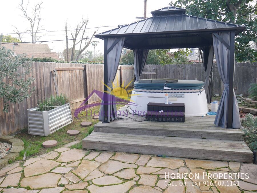 Please click on a photo above to see all photos. Rental Qualifications and Policies for this property: • FICO score of 695 or higher • Income of three times the rent • No evictions nor open bankruptcies • Owner will accept a cosigner • Security deposit must be received within 24 hours of approved application unless other arrangements are made in advance • Must take possession of the property within two weeks of approved application • 1 dog and up to 3 cats with $45 a month pet rent and breed restrictions • No smoking of any kind is allowed in the home • Owner pays for sewer, trash, and up to $40 per month towards water. Tenant pays remainder. • Available with a twelve month lease term Near Eastern Ave. and Marconi Ave. in Arden, this bright, one-story, single family home offers three bedrooms and two bathrooms. This home has a new central heat and air conditioning. The entry opens on to hardwood flooring, six panel doors, dual pane windows, drapes, sheers, and pleated blinds throughout the 1,168 sq. ft. of living space. The living room dining room combo has a ceiling fan with overhead lighting, tiled fireplace insert with tile hearth, wood paneling, large picture windows, and coffee table. The mudroom has tile flooring, two ceiling fans with overhead lighting, slider to rear yard, door to side yard, lots of windows, potters table, hutch, and vaulted ceiling. The kitchen has laminate flooring, wood cabinets, granite counters and tile backsplash, plant shelves, dining nook with built-in seating, French door to mudroom, ceiling fan with overhead lighting, and is equipped with: • stainless steel, frost-free, refrigerator • gas, 5 burner range with dual convection self-cleaning oven • dishwasher • microwave • stainless steel, double sink with convertible faucet, garbage disposal, and purified water The primary bedroom has a ceiling fan with overhead lighting, three door closet with mirrored and frosted doors with two built-in dressers with glass drawers, shelving, and tv mount. The primary bathroom has tile flooring, track lighting, large walk-in tile shower and Carraca stone vanity. The second bedroom tile flooring, ceiling fan with overhead lighting, built-in cabinet and bookcase, door to kitchen, and a single door closet. The third bedroom has hardwood flooring, a ceiling fan with overhead lighting and built-in cabinet, shelving, shoe rack in closet. The hall bathroom has tile flooring, tiled shower over tub, and Carraca stone vanity. The huge fenced rear yard has a patio, owner provided full service gardening, large shed, RV parking, covered hot tub on deck, covered rear pergola with travertine tile flooring, and cat enclosure with access to mud room. In the two-car garage there are lots of cabinets, shelving, utility sink, and file cabinet. The laundry area is also located in the garage and is equipped with a washer and a dryer. This home is located in the San Juan Unified School District and is across the street from Eastern Oak Park and is close to Whitney Elementary and El Camino High School. • Yard maintenance is owner responsibility. • Spa service is tenant responsibility As we are first-come first-serve on application processing, you may wish to apply immediately if you think you want to rent this property. We strongly encourage you to view the property prior to completing an application. Security deposit must be received within 24 hours of approved application unless other arrangements are made in advance. You must take possession of the property within two weeks of your approved application. If you have any questions or would like to make sure you meet the minimum criteria for this property, please call prior to applying. We do business in accordance with all State and Federal Fair Housing Laws. All listing information is subject to change. Cal DRE Broker #00948825 Cal DRE Corporate #01957496 ***Please, do not disturb the residents.*** Central Heat & Air In Unit Washer/Dryer Whole House Fan