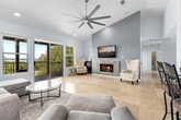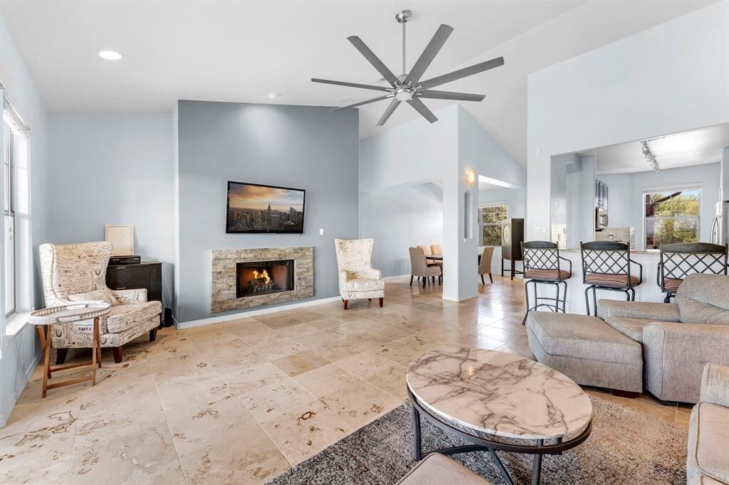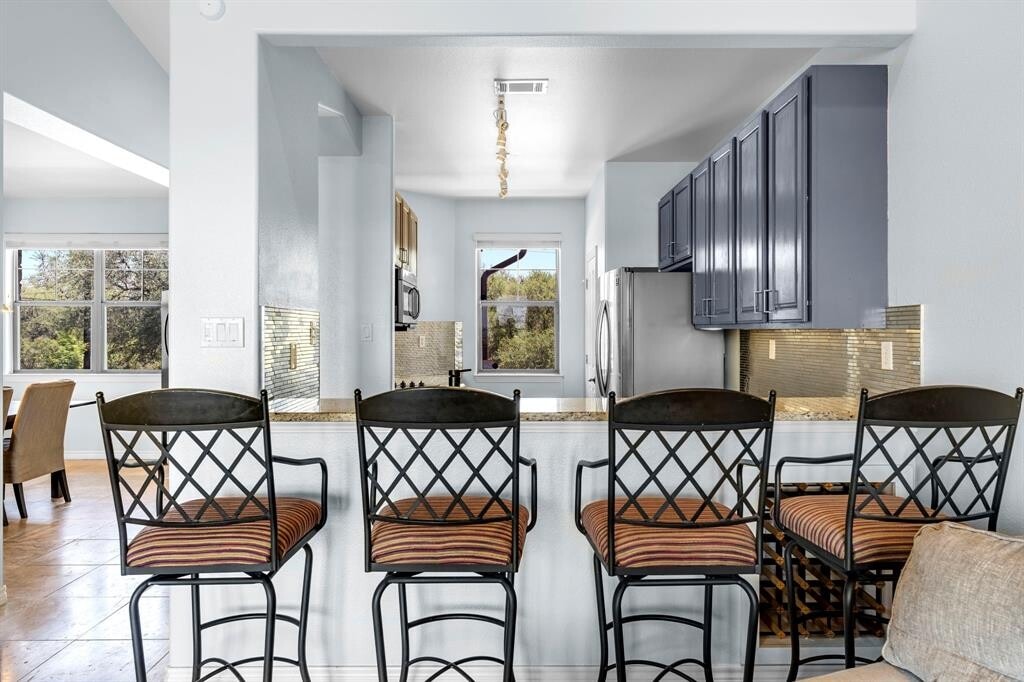 Stunning Lake Travis View Condo for Lease - Beautifully Updated & Move-In Ready! Experience the perfect blend of modern comfort and natural beauty in this bright and spacious 3-bedroom, 2-bath condo with breathtaking Lake Travis views! Photos can’t capture the full magic of the views; you truly have to see it in person. Enjoy an open-concept living space featuring vaulted ceilings, a cozy fireplace, and walls of windows that fill the home with natural light. The updated kitchen includes granite countertops, a cool metallic slim tiled backsplash, sleek cabinetry, and contemporary fixtures; perfect for both everyday living and entertaining. Wake up to lake and nature views from nearly every room, and relax on your private deck overlooking the hills and water. The bathrooms offer luxurious granite counters and porcelain sinks, while the primary suite provides a peaceful retreat with stunning sunsets right outside your window. This quiet, boutique community is fully gated and has only 16 units across 3 buildings, nestled on a hilltop for panoramic views of Lake Travis; the scenery is spectacular. Conveniently located between Four Points and Hill Country Galleria, you’ll enjoy easy access to shopping, dining, and entertainment; all within the highly rated Lake Travis ISD. - 3 Bedrooms / 2 Full Baths - Vaulted Ceilings & Fireplace - Updated Kitchen & Baths - Private Deck with LAKE & Sunset Views - Small, Secure and Peaceful Community - Prime Location Near Lake Travis & Galleria - Move-In Ready! Don’t miss this rare opportunity to lease a Lake Travis view home that combines tranquility, convenience, and style.