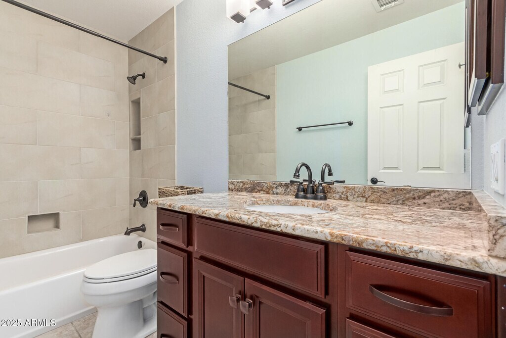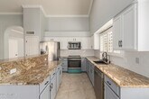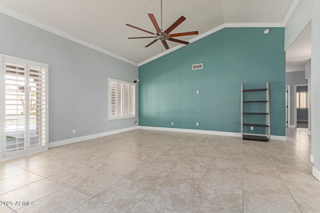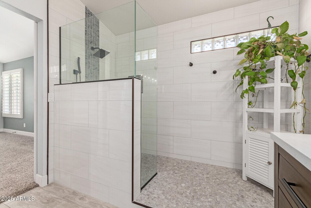 Fall in love with this chic single-level home in the heart of Mountain Park Ranch. Designed for modern living,this 4 bed / 2 bath features soaring vaulted ceilings,plantation shutters,crown molding,and stylish updates throughout. The kitchen offers granite slab counters,white cabinetry,and stainless appliances,while the remodeled primary suite boasts a spa-style walk-in shower. Step outside to your own backyard retreat with a pebble-tec pool,shaded gazebo lounge,and low-maintenance turfall in one of Ahwatukee's most sought-after neighborhoods.