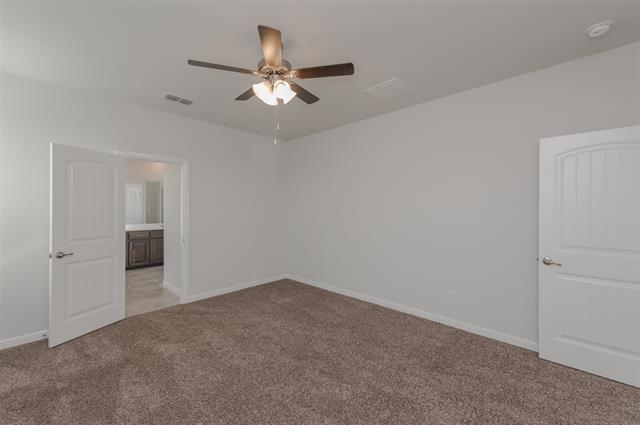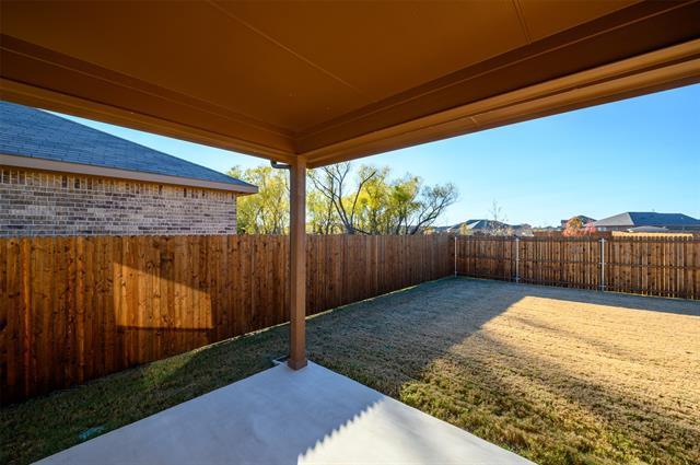 Situated within the Denton ISD in the Ryan Meadows subdivision, this single-story, four-bedroom, two-bathroom residence features an expansive, open living area and a split bedroom floor plan. The kitchen boasts a sizable island, granite countertops, stainless steel appliances, a gas range, refrigerator, microwave, and dishwasher. The primary bedroom suite includes a large walk-in closet, ceiling fan, and a master bath with a dual vanity, garden tub, separate walk-in shower with a glass door, and a water closet. Tile floors are installed in common areas, while carpet covers the bedrooms. Two-inch blinds are present throughout the home. The laundry area includes a washer, dryer, and open shelving for storage. The backyard is fenced with a covered porch and does not have any back neighbors. The property offers convenient access to I-35, the University of Texas at Arlington (UNT), Texas Women's University, Denton, shopping centers, restaurants, entertainment venues, and hospitals. Please note that there is a strict no-pets, no-smoking policy in place.