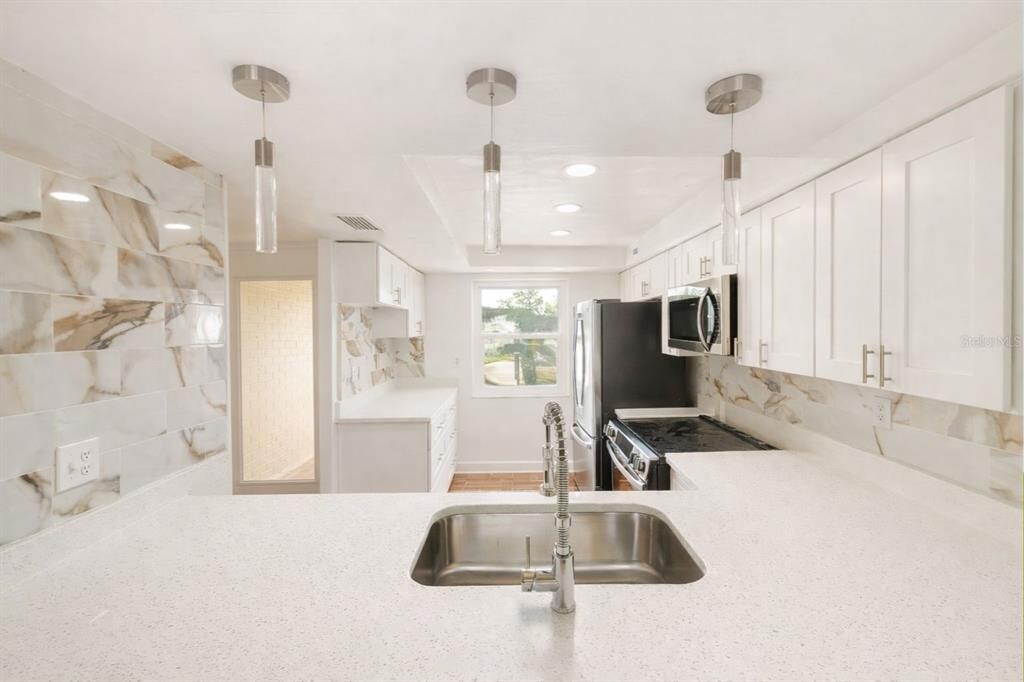 Welcome to 4308 Summersun Drive — a beautifully updated 2-bedroom,2-bath,one-story corner condo in the peaceful 55+ Garden of BeaconSquare 4 community. Now move-in ready,this home has been fully renovated after 2024 storm,including impact-rated windows and doors,tile flooring throughout,modern cabinetry and stainless steel appliances,and fresh interior paint. Step inside to a bright and inviting floor plan featuring a spacious living area,a bonus sunroom overlooking the tranquil pond,and an inside laundry closet for convenience. The primary suite offers an en-suite bath with a walk-in shower and a walk-in closet,while the second bedroom is equally spacious — perfect for guests or a home office. Both bathrooms have been tastefully modernized with updated fixtures and finishes. Enjoy quiet mornings or evening sunsets from your private paved back patio with serene water views. Residents of Garden of Beacon Square enjoy a gated community with assigned covered carport parking and an array of amenities: a community pool,shuffleboard courts,a community dock overlooking the pond,and a clubhouse featuring billiards,social/gathering room,kitchen,library,and laundry facilities. Located just minutes from shopping,dining,medical centers,and the Gulf beaches,this condo offers the perfect blend of comfort,convenience,and community living on Florida’s beautiful Suncoast. Rent includes cable,internet,water,sewer and trash. No pets based on association rules. Minimum lease term available is 6 months. MLS# TB8477426