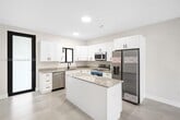Beautifully built, brand-new construction! This unit is located on the first floor. A 3-bed, 2-bath residence features two modern bathrooms with walk-in showers, large format tile throughout, and an open kitchen with an island, stainless steel appliances, and recessed lighting. The floor plan is bright and airy, designed for comfortable living. Residents will enjoy a private entrance, private parking, and a private adjacent storage closet, along with a clean, modern aesthetic throughout. This unit has 2 covered balconies. Move-in ready and ideal for tenants seeking style, convenience, and comfort.