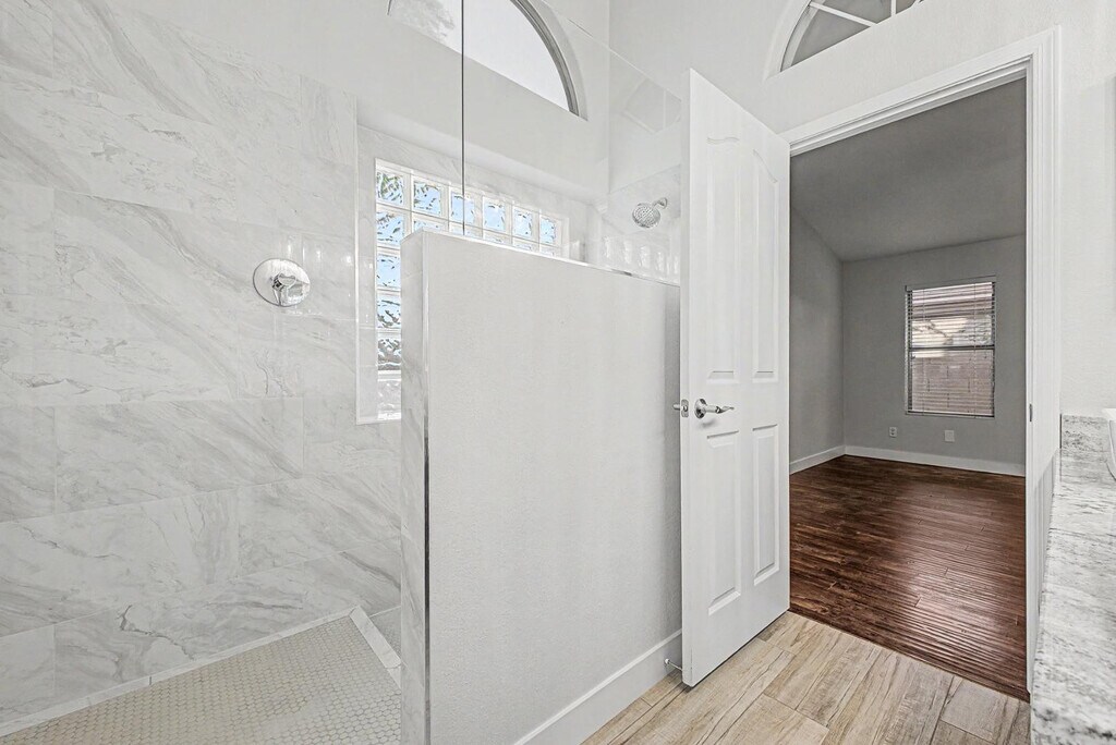 All new kitchen cabinets,new walk-in shower in the primary bathroom and a remodeled guest bathroom highlight this soft contemporary remodel. There is no carpet inside this home,you have a rich hand-scraped brown wood laminate flooring throughout and tile in the bathrooms. Cabinets are finished with updated hardware,along with granite countertops,a designer faucet and soap dispenser,subway tile backsplash,and stainless steel appliances. The kitchen includes an island with a breakfast bar. In the backyard you have a covered patio and real grass with a tree to enjoy the shade during hotter months. The living area features a fireplace with a granite surround and accent wall. Bathrooms include vessel sinks,updated fixtures,and mounted mirrors. The primary bedroom is spacious with a walk-in closet. Washer and dryer included. Located just a few homes from the wash with a walking path,the property sits in a prime Desert Ridge location. Youre minutes from Desert Ridge Marketplace and High Street,with easy access to the 101 and 51 freeways,making it convenient to get anywhere in the Valley. Plenty of nearby dining,shopping,golf,and entertainment options make this a highly desirable area to live.
