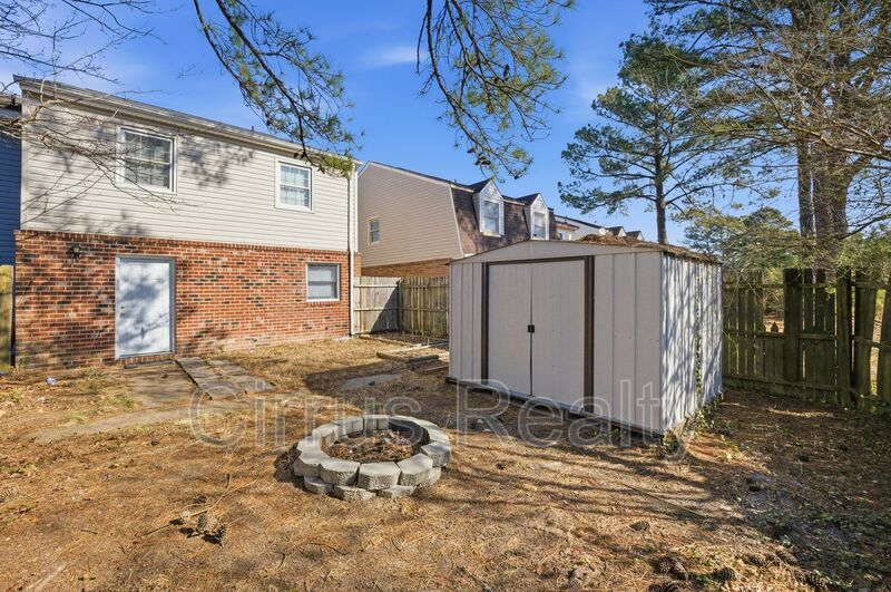 Western Branch end unit townhouse with three bedrooms and two and a half baths. Spacious interior includes living room with fireplace, dining room, eat in kitchen, and half bath on first floor. Three bedrooms and two full baths on second floor. Separate utility room with washer and dryer hook ups. Washer and dryer stay but are "as is." Plank flooring on first floor. Carpet on stairs and second floor. Fenced backyard with shed (shed "as is"). Driveway parking. Covered entry. Amenities: utility room