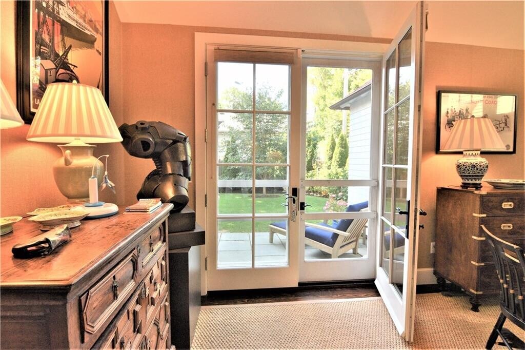 This stunning carriage house is centrally located just off Bellevue Ave. With a lovely covered front entrance,one enters into a large living room with high ceilings,dark stained floors,built-in cabinets and shelving,sisal rugs and grass cloth covered walls with beautiful light. Comfy leather couches surround a large flat screen TV. French doors lead to a private stone patio with lush,landscaped yard and privacy fence. There is a half bath and laundry room on either side of the living room. The kitchen offers white cabinets and soapstone counters with stainless appliances. The dining area offers seating for 8. For convenience,the master en-suite is on the first floor with a King bed and large flat screen TV. The second floor has an open area which could be used for an office or additional sitting room with a full pull-out couch. There are two additional bedrooms with two twins in each share a full bath. Central A/C- easy access to town and Newport beaches. Sorry no pets. Also available for AUGUST $22,500/mo. (JULY has been rented). MLS ID 1403339