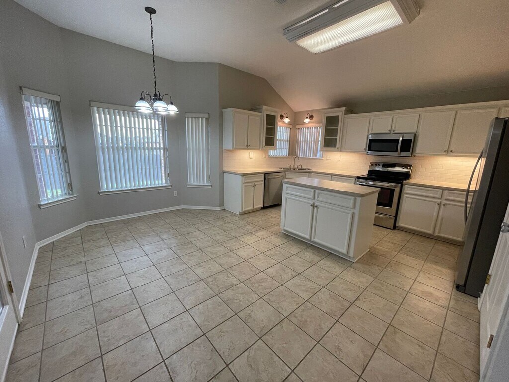Spacious 3-bedroom, 2-bath single-family home in Killeen, TX. This pet-friendly home features a mix of vinyl plank and ceramic tile flooring, vaulted ceilings, and a brick fireplace. The eat-in kitchen offers stainless steel appliances and generous cabinet space. The primary suite includes a double vanity, jet tub, separate shower, and a custom closet with built-in shelving. Enjoy a laundry room, covered back patio, fenced yard, and convenient outdoor storage shed — perfect for comfortable Texas living. Virtual tour coming soon! Disclaimer: The furnishings or enhancements shown are AI-generated and intended for inspiration only. They may not reflect the actual scale, condition, or current features of the property.