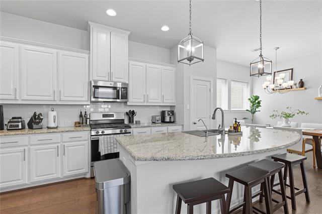 Come take a look at what living in Viridian can do for you and your family! This amazing master planned community includes community pools , sailing center, tennis or pickleball and volleyball courts, ponds, club house, walking and hiking trails. Minutes drive to viridian elementary for quick drop and pick up kids from school. Let's not forget about all the restaurants and shopping right across the street from the community for maximum convenience. The cherry on top is this amazing community is only a few miles from the Arlington entertainment district, featuring Texas Live and the Dallas Cowboys & Texas Rangers stadiums. As if all this wasn't enough, this 3 bedroom home features sleek fixtures all through the home, modern hardwood flooring and an open space concept, uniting the kitchen with main living areas to keep everyone engaged. The covered patio provides the perfect private escape for you and your furry friends to be able to enjoy all types of weather, without having to leave the house.