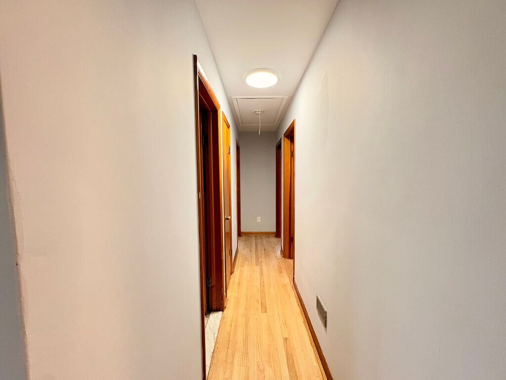 Sprawling Brick Ranch with Huge Lot & Garage in Prime Nottingham Location Welcome to 4311 Fitch Ave, a spacious brick rancher set on nearly half an acre in highly desirable Nottingham. This expansive home offers over 2,800 square feet of living space, including three main-level bedrooms, 2.5 bathrooms, and a partially finished basement perfect for a rec room, gym, or home office. Step inside to discover gleaming hardwood floors, a bright and inviting living room with a cozy fireplace, and an eat-in kitchen ideal for casual dining. All bedrooms are generously sized with hardwood flooring, while the main-level full bath and half bath provide functional convenience for busy households. Enjoy fresh air or host gatherings in your sprawling, private yard, and take advantage of the attached two-car garage and wide driveway for abundant parking. Central air conditioning and updated systems ensure year-round comfort, while the accessible layout provides easy living for all ages. Situated in a quiet neighborhood close to great schools, parks, shopping, and commuter routes, this rarely available rancher is move-in ready. Don't miss the perfect opportunity to call this Nottingham gem your new home, schedule a viewing today!