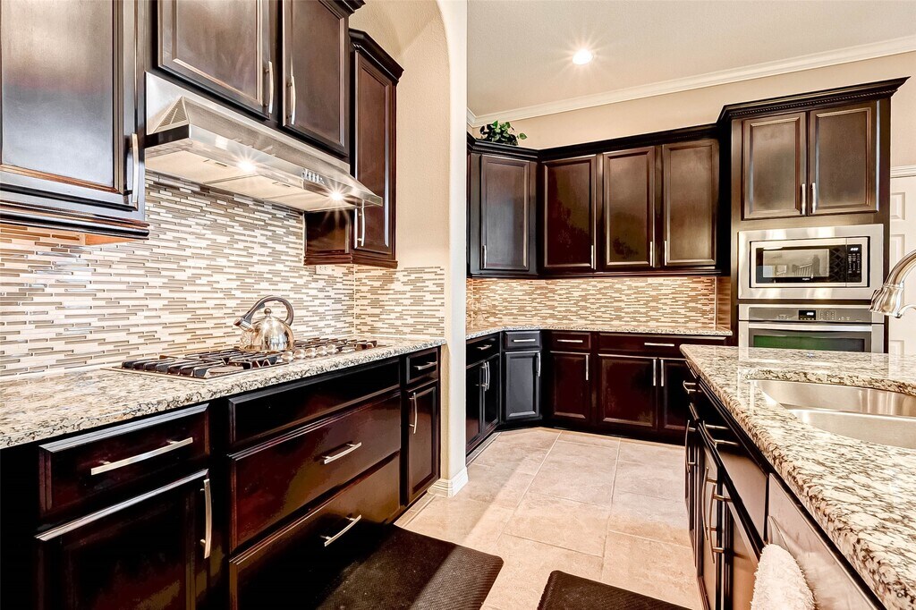This stunning five-bedroom home,located in the heart of the Pine Mill Ranch neighborhood,offers two bedrooms on the first floor and features a dual staircase. From the moment you enter,you'll appreciate the home's casual elegance and brightness. The spacious family room seamlessly opens to the kitchen,which boasts granite countertops,a large island with seating,SS appliances,a breakfast room,and a formal dining room. There is also a study/flex space complete with French doors. The primary suite includes a large bathroom with a walk-in shower. The three-car garage features an electric charger in the double garage,perfect for smart cars. Enjoy movie nights in the media room (media furniture included) or relax in the spacious game room. The backyard has a covered patio and an impressive outdoor kitchen. It is conveniently located near highly acclaimed Katy ISD schools and offers access to neighborhood pools,playgrounds,and a splash pad. Make your appointment today! MLS# 63307805