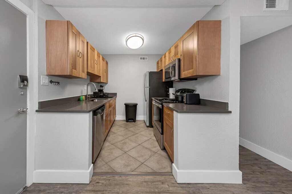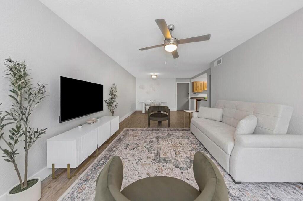 Your Tampa escape awaits in this inviting 2-bedroom unit. Feel at home with all the essentials for a smooth stay. This apartment features a full kitchen that includes cookware, dinnerware, a microwave, a stove, and a full-size fridge. The living area has a Smart TV with streaming apps and fast Wi-Fi for work or entertainment. Central air conditioning and heating ensure year-round comfort. Starter supplies are provided, including toiletries, paper goods, coffee, and cleaning basics. The apartment is professionally cleaned before every stay. On-site parking is available for added convenience. If you’d like an item returned that was left behind, a $35 lost and found management fee applies. Guests must provide a prepaid shipping label. Conveniently located on Kennedy Blvd near restaurants, shops, and downtown attractions, this apartment is perfect for couples, families, and small groups. Explore the Tampa Riverwalk, the Florida Aquarium, Busch Gardens Tampa Bay, the Tampa Theatre, the Tampa Museum of Art, the Glazer Children's Museum, Curtis Hixon Waterfront Park, Ybor City Historic District, International Plaza & Bay Street, and Bayshore Boulevard Walk & Trail. No events or parties are allowed per city ordinance. A $150 penalty will be charged if the camera is disconnected, tampered with, or moved from its original position. Items left behind are held for up to 14 days. Please double-check the space before checking out. [SI]