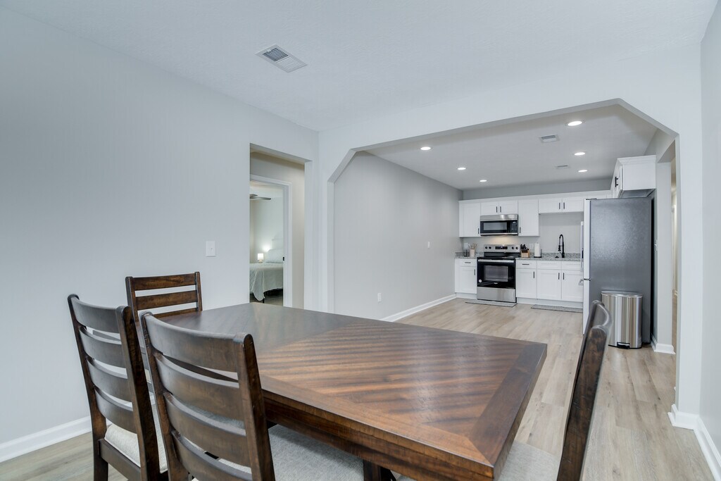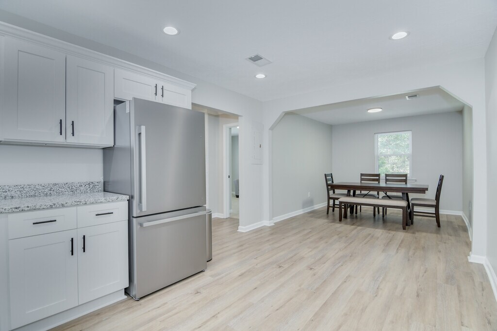 Completely renovated 4bd(+bonus)/3ba brick ranch close to Ft Gordon. This home is practically brand new and features a new roof, windows, HVAC unit and so much more! Inside, you will find updated LVP and carpet throughout the home. The kitchen features new shaker cabinets, granite, and stainless steel appliances. The master and 2nd bedroom feature en-suite bathrooms for added privacy. In the bathrooms, you will find tile surrounds and updated vanities. Outside, you can enjoy privacy with the newly added fence. Utilities, internet, and all furnishings are included to make sure you have a perfect stay while away from home.