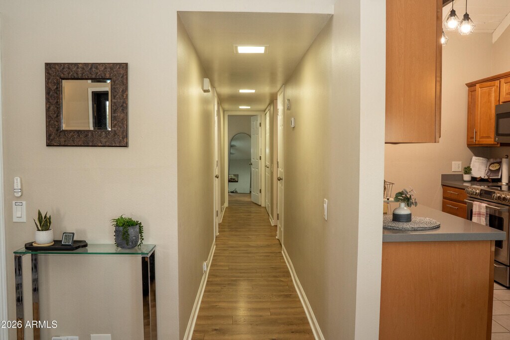 Welcome to Arcadia Lite living at its best! This 1,152 square foot single level townhome sits just steps from Los Olivos Park and puts you right in the middle of all the action of the Camelback East village. Inside,you will love the vaulted ceilings,transom windows,and all the natural light pours in that makes the whole place feel bright and open. The layout is easy to live in,whether you are hosting friends for dinner or just kicking back on the couch. And the location? It does not get much better. You are surrounded by some of Phoenix's top spots like Chelsea's Kitchen,The Henry,The Vig,Piestewa peak,Camelback mountain and the Biltmore hotel and golf course. Some of the features include electric heating and cooling,no interior steps,roller shields,laminate,and tile flooring,and one common end wall. The home includes a full-size washer and dryer. Two carport parking spaces are available,along with an enclosed and partially covered patio and porch. The townhome consists of two medium-sized bedrooms plus a larger primary bedroom which includes a walk-in closet and 3/4 bathroom. Each bedroom has a queen bed,two nightstands and a dresser. The office/bedroom contains a desk,chair,and comfortable hide a bed. The full bathroom and full-size washer/dryer are off the hallway. The kitchen has nice cabinets,lighting,and stainless-steel appliances. The living room contains a smart TV and access to a private patio. The townhome will be self-check in,and the minimum stay is 30 days,but we will rent for up to 1 year. Our interaction with you will be through online applications,separate email,phone,or text messages. We are very responsive to messages,and we are interested in making your stay very pleasant. We are also fair and honest. The rent includes water,sewer,garbage,internet/Wi-Fi,maintenance,and parking. The owner will pay the monthly HOA fee which covers those expenses. The tenant is responsible for electricity and will reimburse the owner each month for their electric use. The A/C and heat is electric,and the electricity account will stay in the owner's name and varies by month. The HOA is Keresan Park,and it includes a pool and heated hot tub. The townhome is centrally located 1.5 miles to Interstate 51,less than .5 miles to Sprouts and restaurants,2.6 miles to a Heart hospital and a Children's hospital,7 miles to the Phoenix airport,6.5 miles to old town Scottsdale,3.5 miles to Frys grocery store,and about 1 mile away from the Biltmore Fashion Park mall.