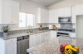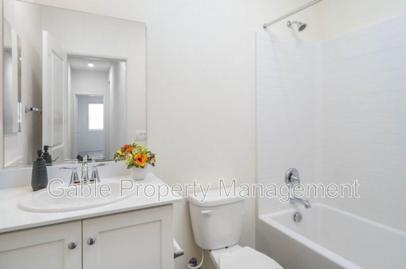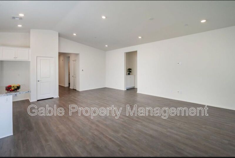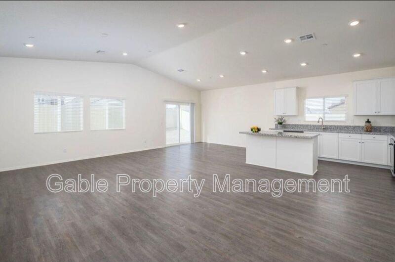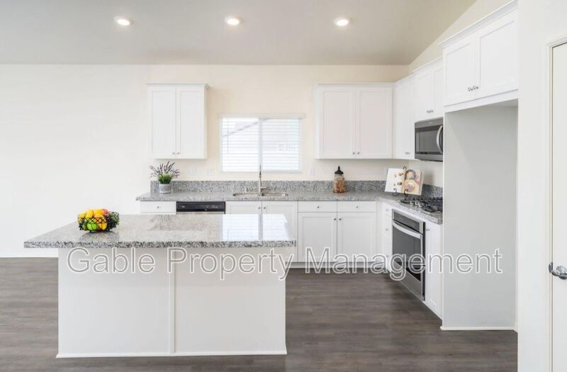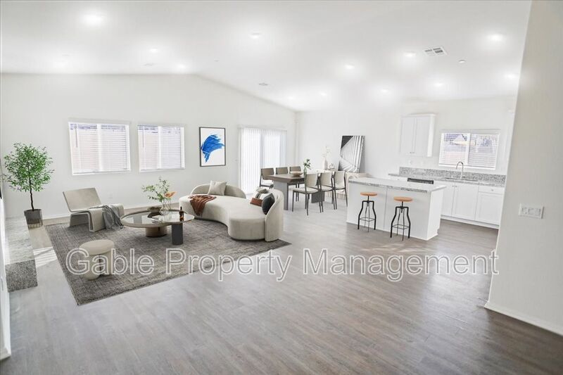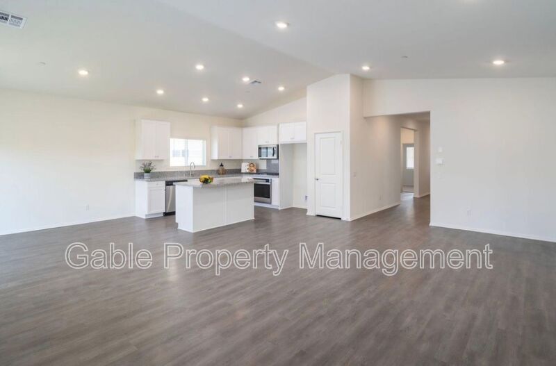 Beautiful single-story home offering 4 bedrooms, 3 full bathrooms, and over 1,900 sq. ft. of living space, located in a newer community built in 2023. This home features excellent curb appeal with a welcoming front porch and seating area. The open-concept floor plan is filled with natural light and showcases upgraded vinyl flooring throughout. The modern kitchen includes white custom cabinetry, a large island, granite countertops, stainless steel appliances, recessed lighting, a pantry, and a breakfast bar that opens to the dining area and spacious living room—perfect for entertaining. All four bedrooms are generously sized. The second and third bathrooms feature upgraded vanities with shower/tub combinations. The primary suite offers an attached bathroom with dual sinks, upgraded vanity, separate glass walk-in shower, soaking tub, and a large walk-in closet. Additional highlights include a separate laundry room, tankless water heater, solar system 2 car garage, and sliding glass doors leading to a good-sized backyard with vinyl fencing. Conveniently located near shopping, schools, parks, and restaurants.
