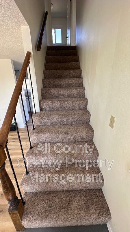 This beautiful, 3 plus bed, 1 3/4 bath townhome is perfectly located in a great neighborhood with easy access to Indian Paintbrush Elementary, Jacoby Golf Course, Ivinson Hospital, the University of Wyoming and hiking and mountain biking in east Laramie. It includes a fenced yard, washer and dryer, and 1 car garage. This is a great place for a family or several roommates. Electric and gas in tenant's name and paid by tenant; Water/sewer/trash remains in owner's name; but is paid by the resident via a paper bill sent to the residence. NO CATS!!! ONE DOG NEGOTIABLE!!. Available 12/16/2025. To schedule a showing, or submit an application, visit . Showings are either facilitated by current residents or are a self-guided lockbox showing. Applications are valid for 90 days and the application fee is non-refundable. Each occupant age 18 years and older must submit an application. Lease fees and resident benefits package fees apply to approved applicants, no exceptions. Renters insurance is required. For properties that allow pets, pet profiles are required and pet fees will apply. For questions, call All County Cowboy Property Management M-F 9-3 (except holidays) at .
