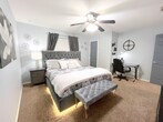 Property Id: 2110317 Welcome to your serene 4-bedroom, 2.5-bath retreat in peaceful New Territory, Sugar Land—just minutes from Highways 90 & 99 and a short drive to downtown Houston. Recently renovated, this thoughtfully designed home offers modern comfort and functionality, perfect for families, professionals, or those needing temporary housing. The main floor includes a spacious living room with smart TV and indoor firepit, fully equipped kitchen with stainless appliances and double oven, dining area/office, laundry, and half bath. Upstairs, find two king bedrooms (one adjustable), two queen bedrooms, plus optional airbed—all with plush bedding, storage, and key-lock entry. Enjoy a large fenced backyard with covered patio, firepit, and BBQ grill. High-speed Wi-Fi, a dedicated workspace, and all essentials are provided for your comfort. Whether for a weekend getaway, extended stay, or relocation, this home blends convenience, relaxation, and style.