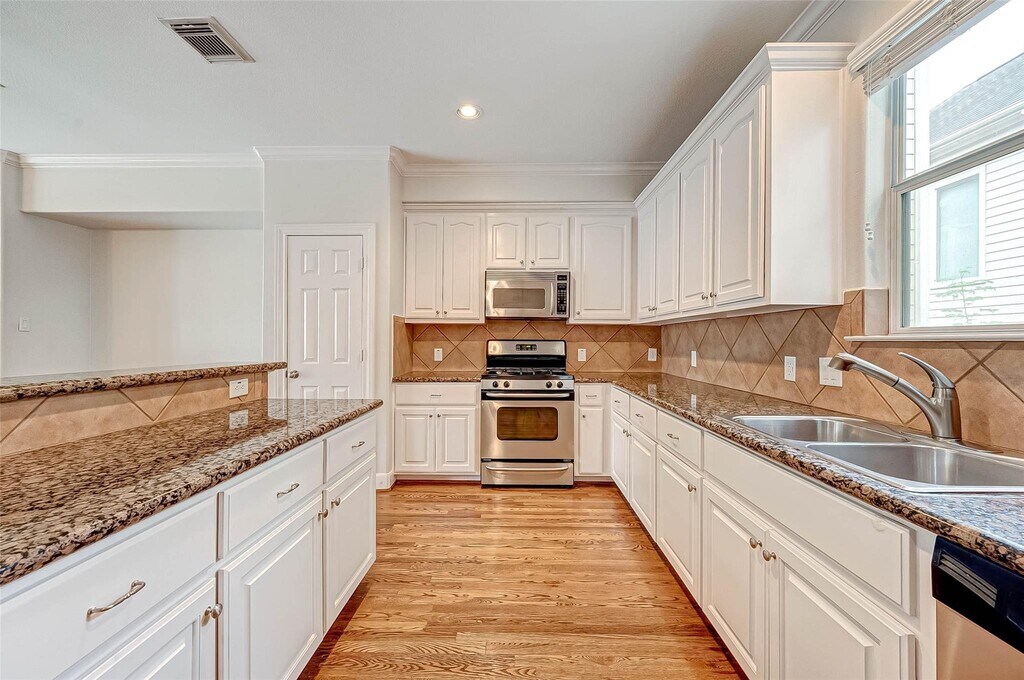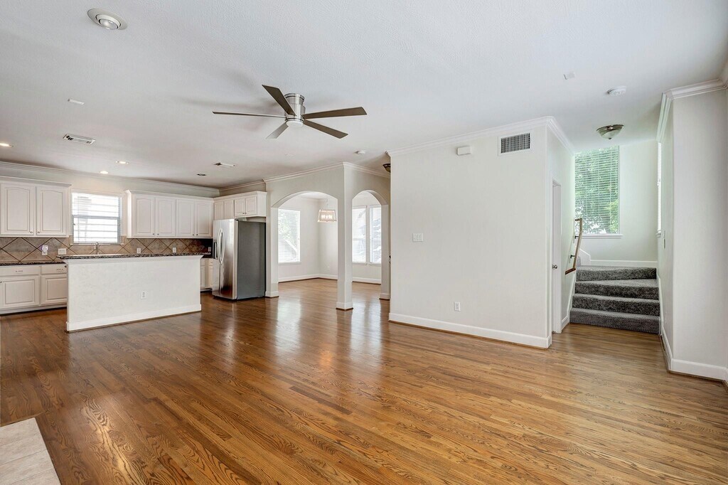 Freestanding home in Rice Military,minutes from Memorial Park,Downtown,and the Washington Corridor. First floor offers a welcoming entry plus a private bedroom with bath—perfect for guests,roommates,or a home office. The second floor is designed for entertaining,featuring open living,dining & kitchen with hardwood floors,and windows for abundant natural light,and an updated dining area with modern lighting. Kitchen includes granite counters,stainless steel appliances,and island with extra storage. The spacious living room with fireplace opens to kitchen,creating the perfect flow for gatherings or relaxing evenings. On the third floor,you’ll find the primary suite,additional bedroom,and laundry. The primary offers hardwood floors,two walk-in closets,large windows,and ensuite bath with double vanities,jetted tub,separate shower,updated lighting,and linen closet. Washer/dryer included. Enjoy a private fenced yard,2-car garage,and driveway with extra parking. MLS# 46604968