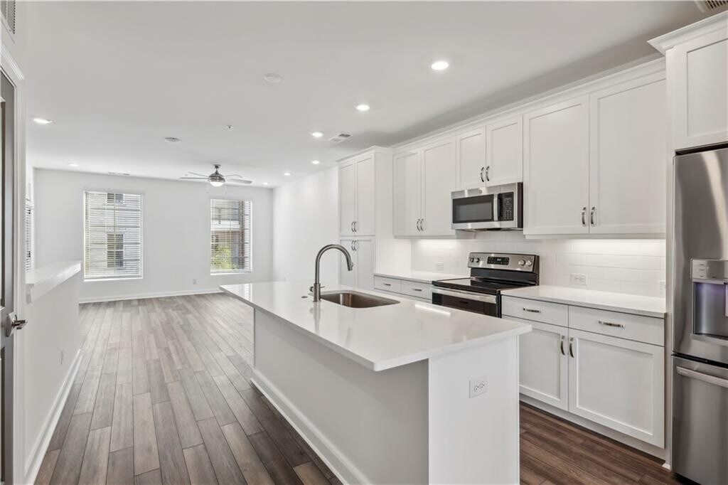 Thomas LeCainREADY FOR MOVE IN! Like Brand New Construction Crawford Stacked Townhome! Incredible mixed-use, live/work/play designed community! Steps from The Maxwell Retail Featuring Rena's Italian Fishery, Fairway Social, July Moon also steps from the new Starbuck's and Shake Shack, on the Alpha Loop and only 1/2 mile from the Alpha Square! You cannot beat the location! This two story home features an open design, GE stainless appliances, quartz kitchen countertops, huge island for entertaining and tons of storage! 1 car attached garage with driveway for additional parking! Beautiful White design package and hardwoods! Swimming pool, cabana & bocce ball!