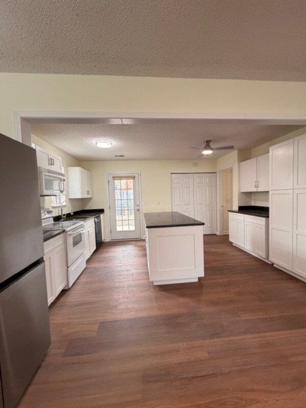 Newly Renovated Patio Home with Custom Kitchen and Split Plan Design! Discover the charm and convenience of this fully renovated 3-bedroom, 2-bathroom patio home. The homeowner has completed a comprehensive renovation, ensuring a fresh and modern living experience. The open-plan living area is the heart of the home, featuring a brand new, stunning kitchen. It boasts custom-made cabinets, a solid surface countertop, and a functional center island, perfect for cooking and gathering. Designed for privacy, this home features a popular split-bedroom plan, separating the primary suite from bedrooms 2 and 3. The Primary Suite is a true retreat, offering: Two spacious closets. A double vanity for convenience. A relaxing garden tub/shower combination. Enjoy low-maintenance outdoor living with a private, fenced yard, and landscaping included. This is an ideal home for comfort, style, and ease.
