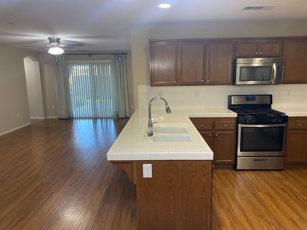 Welcome to "Tulare," a charming 3-bedroom, 2-bathroom home located in the heart of Tulare, CA. This home is designed with modern living in mind, featuring hard surface flooring in the living area, perfect for easy maintenance and a sleek look. The kitchen is a cook's dream, equipped with a gas stove, built-in microwave, and stainless steel appliances. The bathrooms are designed for convenience, featuring dual sinks. The home also includes indoor laundry hookups, making laundry day a breeze. Ceiling fans and shutters are installed throughout the home, ensuring comfort and privacy. As an added bonus, yard care is included, allowing you to enjoy the beauty of your outdoor space without the hassle of maintenance. "Tulare" is more than just a house, it's a lifestyle.