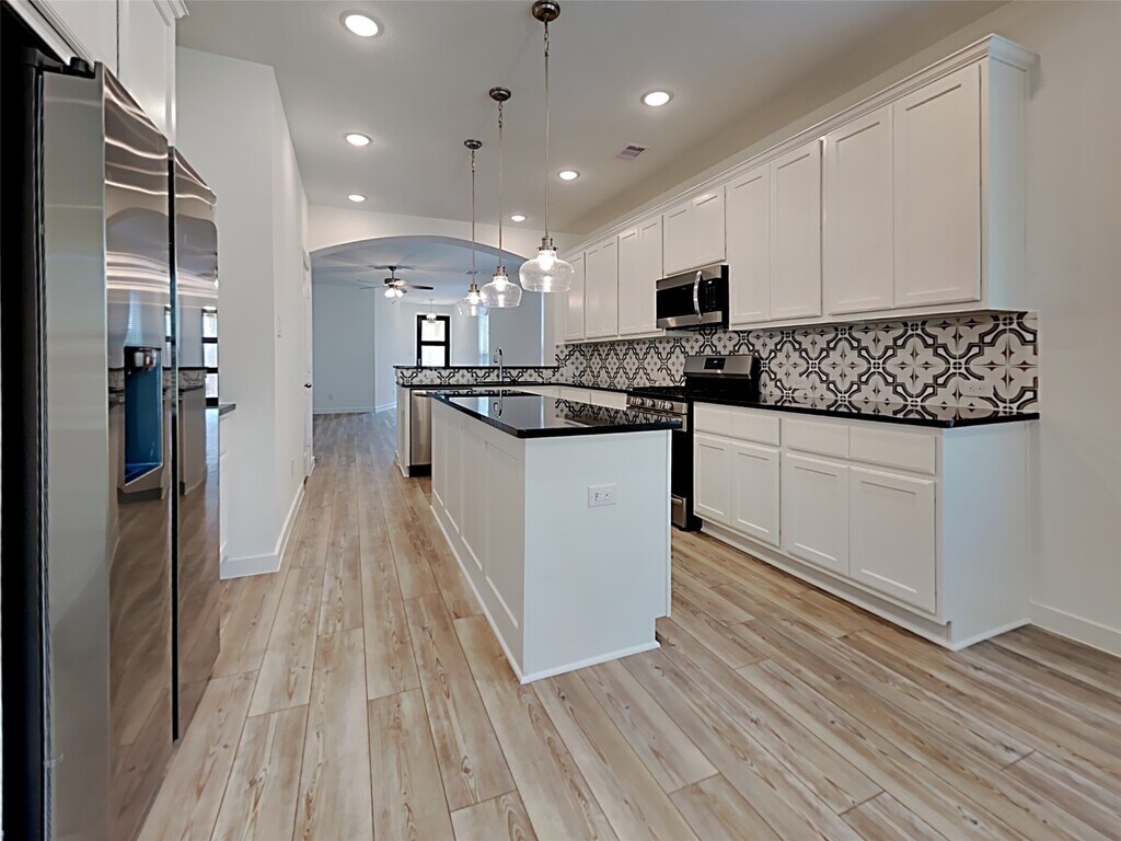 Stunning three-bedroom,two-bath single-story home in the highly desirable Woodlands Hills master-planned community. Designed for modern living,this home features high ceilings,upgraded doors,and a bright open-concept layout. The spacious living area flows into a beautifully appointed kitchen with a large island,granite countertops,stainless steel appliances,breakfast bar seating,and a cozy dining nook. The private primary suite offers a walk-in closet,dual vanities,a glass-enclosed shower,and a soaking tub. Enjoy an extended covered patio and fenced backyard with no rear neighbors. Community amenities include a 17-acre park,resort-style pools,fitness center,scenic trails,tennis courts,playgrounds,and more. MLS# 81459069