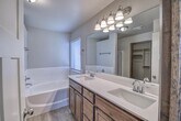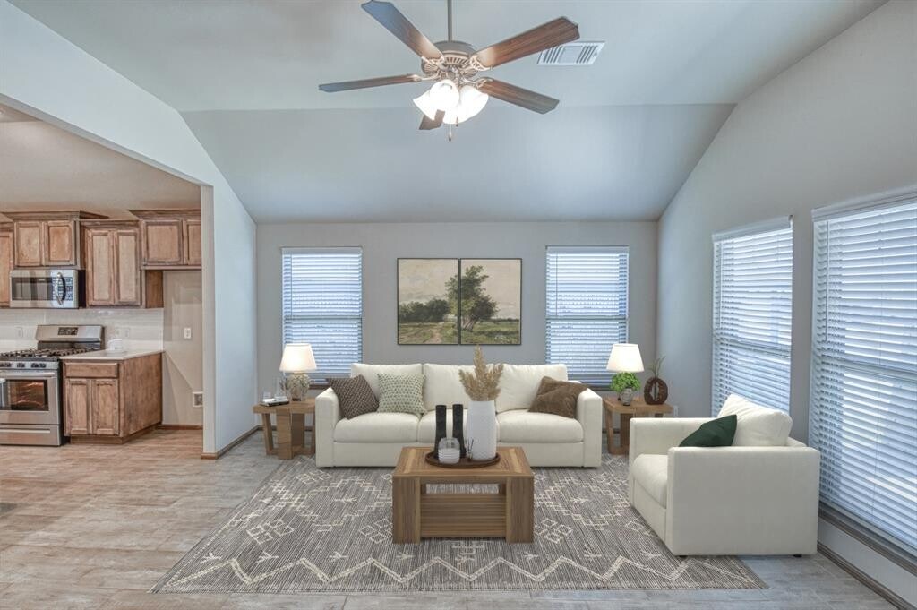Beautiful,Mountain Cottage style 3 bedroom home with a unique open floor plan that is spacious and great for entertaining! The kitchen comes with lovely quartz countertops and tile backsplash,gas range,and giant island that can serve as an eating space as needed! The primary bedroom suite offers double sinks,tub and walk-in shower and big walk-in closet! But wait,there's more....storage!!! Both secondary rooms come with linen closets in addition to standard closets! The laundry room is located conveniently next to the guest rooms with a drop zone/bench for coats,bags,and shoes for those on the go! The covered porch and large back patio make outdoor living more enjoyable along with a fully fenced back yard for privacy! Skyline Trails amenities include a playground,splashpad,and walking trail. Owner is licensed.