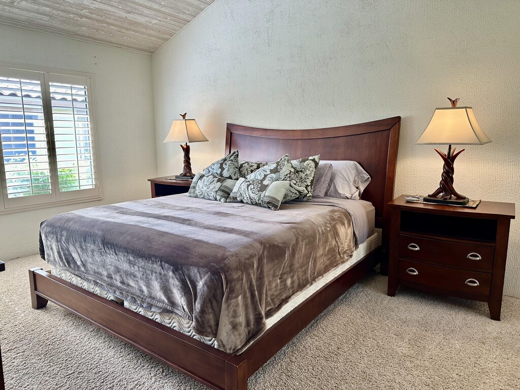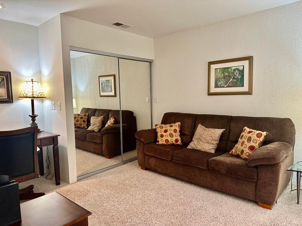Welcome to this lovely 30 Plan condo featuring 2 bedroomsone with a king bed and the other with twinsplus a den with an office desk and convertible full sleeper sofa,perfect for guests or for working. The kitchen includes a charming breakfast nook,ideal for casual meals. Enjoy the convenience of an attached garage and a north-facing patio that overlooks the spacious double-wide fairway,offering beautiful views. The interior boasts newer tiled flooring in the common areas,complemented by cozy carpeting in the bedrooms. This condo is a wonderful blend of comfort and stylecome see it for yourself!