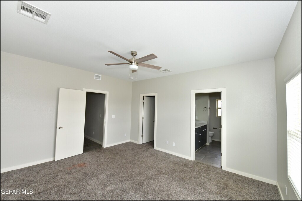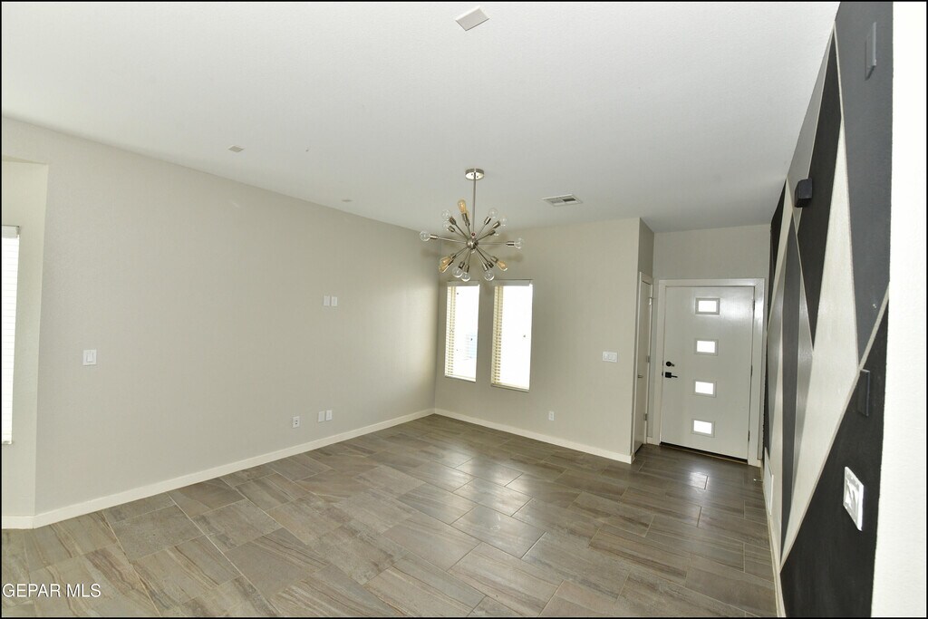 Charming and spacious,this delightful three-bedroom,two-bathroom home radiates a comfortable,lived-in appeal. Greeted by a warm living room,the open layout seamlessly connects to a functional kitchen equipped with all the essentials for home cooking. The split floor plan ensures privacy for the restful primary bedroom,complete with an ensuite bath. A dedicated laundry area adds everyday convenience. The fenced backyard is a blank slate ready for a garden,play area,or peaceful patio set. Nestled in a friendly neighborhood,you're only a short drive from Fort Bliss,the University of Texas at El Paso,and the vibrant cultural offerings of downtown El Paso. Deposit-Free Renting service to Obligo qualified renters,fees may apply.