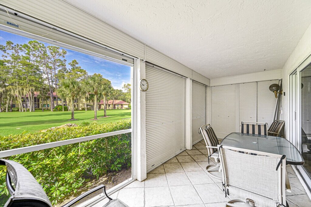 Experience the charm of Naples with this delightful 2-bedroom, 2-bath condo offering stunning golf course views and a screened patio. Spanning 1,500 square feet, this single-story condo provides step-free entry and is conveniently located just 4 miles from the beach, making it an ideal retreat for relaxation and exploration. Feel at home in this thoughtfully designed condo featuring a smart TV with Netflix, a dining table, and a private lanai equipped with a dining set. The fully equipped kitchen includes a refrigerator, stove, oven, dishwasher, Keurig and drip coffee makers, toaster, microwave, and all the cooking basics, dishware, and flatware you need for a comfortable stay. Parking is available in the community parking lot for one vehicle. Additional fees and taxes may apply. Nestled in a vibrant community, this condo offers easy access to a range of amenities including a year-round community pool, pickleball, bocce ball, and tennis courts. Explore the nearby shops and dining options on Fifth Avenue South or enjoy a meal at the on-site restaurant with an outdoor deck. The beautiful Gulf Coast beaches are just a short drive away, ensuring endless opportunities for relaxation and adventure. Smoking, pets, and events or large gatherings are not allowed on the property. Guests must be at least 25 years old to book, and a photo ID may be required upon check-in. [SI]