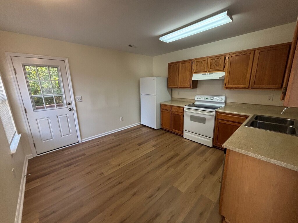 Discover an exceptional living opportunity in this newly renovated 3-bedroom, 3-bathroom garage apartment, meticulously updated for comfort and style. Step inside to find brand-new wood grain LVP flooring extending throughout the entire home, and LVP Tile in the bathrooms, complemented by a fresh coat of paint in every room. The eat-in kitchen opens onto a private deck, featuring new beautifully stained decking, perfect for morning coffee or evening relaxation. This versatile layout offers both privacy and convenience: the upper level boasts two spacious bedrooms and two full bathrooms, while the lower level provides an additional bedroom and bathroom with its own private, separate entrance – ideal for a home office, guest suite, or independent living space. A generously-sized laundry room (hookups only - washer/dryer not provided) is also conveniently located on the bottom level. Parking is never a concern with plenty of space available, including one dedicated garage bay for tenants, additional driveway parking, and another garage bay reserved for owner storage (negotiable use of second bay based on increased monthly rate). Beyond the apartment's charm, its unbeatable central location offers easy access to a vibrant array of dining, entertainment, and shopping options, along with convenient public transportation. You're just 10 minutes from the sun-drenched beach, a mere 5 minutes from bustling Historic Downtown Wilmington, and only 5 minutes from UNCW. Don't miss out on this rare deal for a prime, move-in-ready living space! Landscaping included. Call today to schedule a tour!