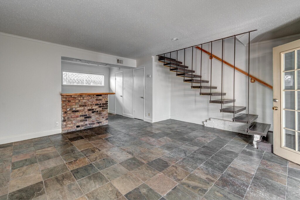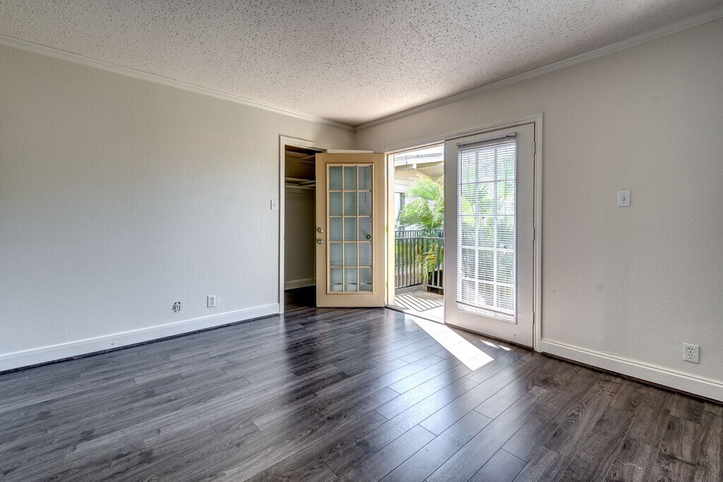 Martha BeaudryThis 2-story apartment sits in a small, gated Mediterranean-style community built around a peaceful courtyard dotted with palm trees and shaded benches. The unit is approximately 700 sq. ft. and offers a comfortable layout with the living area, kitchen, and half bath downstairs, and two bedrooms with a full bath upstairs. The bathroom features a stand-up shower (no tub). Slate tile flooring on the main level and laminate upstairs give it a clean, early 2000s vibe. The property has unassigned, first-come-first-served parking and a coin-operated laundry room on site. A cute, well-kept boutique property with a relaxed courtyard atmosphere.