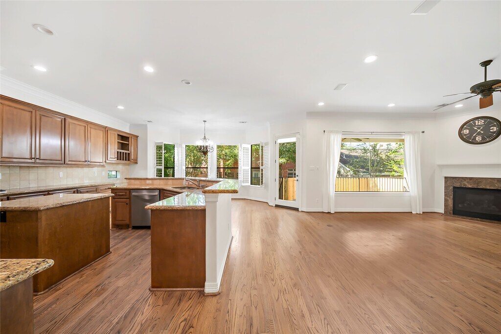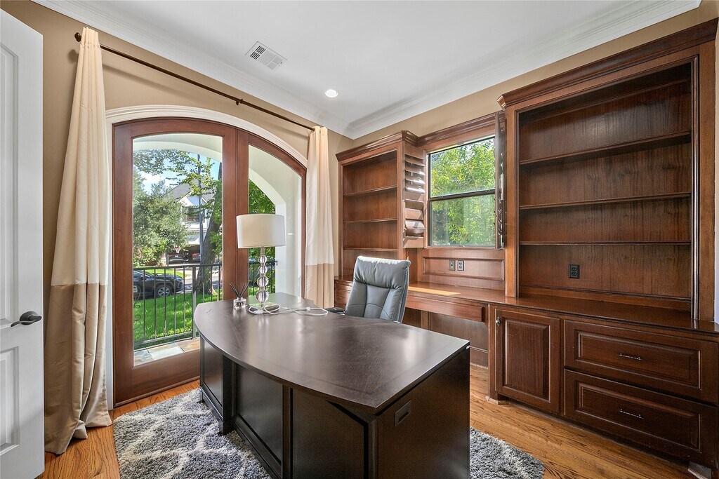 This stunning stucco and stone residence features a thoughtfully designed floor plan with 4 spacious bedrooms,3.5 bathrooms,and an upstairs study room complete with custom built-ins,making it ideal for families of all sizes. The open-concept kitchen showcases neutral granite countertops,KitchenAid double wall oven with upgraded Samsung built-in microwave.beautiful curve stairscase with iron sprindle. Four bedrooms plus game room and utilities rooms upstairs. low-maintenance artificial turf,Located just two blocks from Evergreen Park and Pool,and within walking distance of Russ Pitman Park,Nature Discovery Center,Evelyn’s Park,Lafayette Park,Officer Lucy Dog Park,and the highly acclaimed Horn Elementary. The home also offers quick access to the Texas Medical Center,Rice University,Downtown Houston,and the Galleria. This move-in ready home includes fridge/washer/dryer and never flooded MLS# 12608722