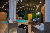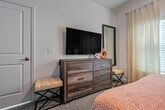 Feel at home in this brand-new corner lot vacation property located in Storey Lake, backing onto a serene pond with no rear neighbors. Just steps away from the newly built clubhouse, this home is ideal for families, whether for large or small gatherings. Located only 7 miles from Disney and a short drive to Universal, SeaWorld, and other Orlando attractions, this property offers a prime location. Central Florida's top-rated golf courses are within a 10-minute drive, and the premier shopping corridor, including the famed Millennia Mall and The Loop, is nearby. The world-renowned town of Celebration, inspired by Disney, is also close by. Storey Lake is a 25-minute drive from Orlando International Airport, and Central Florida's famous coastal region is only a short drive away, offering access to the Atlantic Coast and the Gulf Coast within an hour. Be among the first to stay in this modern vacation rental featuring unique theme rooms that promise wonderful family memories. The home offers Moana and Mickey Mouse themed rooms, a covered backyard, and a lanai perfect for entertaining and capturing family photos. This spacious home features 5 bedrooms and 4 bathrooms, an open concept family and dining room, and a private screened-in lanai with a pool and TV. It comfortably accommodates up to 14 guests. On the main floor, there is a queen bedroom sharing a bathroom with a Moana themed bedroom with two full beds. Upstairs, find a king master bedroom suite, a second king suite with a private bathroom, and a Mickey themed bedroom with a bunk bed featuring a full and two twin beds. All bedrooms are equipped with a 55” smart TV. For your convenience, the home includes a laundry room with a washer and dryer, free WiFi, free parking, and a welcome package with bathroom and kitchen essentials. The Storey Lake Resort is a haven of family fun, situated around a scenic lake with a variety of water amenities and activities. The Hideaway Club features a large pool with a lazy river, two waterslides, and a children's splash pad. Relax in the spa or sunbathe on the terrace and sand beach areas. Enjoy fishing, canoe and kayak rentals at the community dock, and savor a cold beverage or ice cream at the resort’s poolside café. Engage in mini-golf, volleyball, or basketball, and escape the sun at the covered tiki bar. Inside the resort’s clubhouse, you'll find a guest lounge area, fitness center, and business center. The newest Pirate themed clubhouse, just steps away, offers a lazy river, splash pad, and pool. Rental at this property grants access to both clubhouses at no additional cost. Quiet hours are observed between 22:00 and 8:00. [SI]