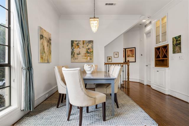 Discover this beautifully updated three-story brick residence in the heart of Dallas’ coveted Oak Lawn neighborhood—offering the rare advantage of no HOA dues. Designed for both comfort and style, this home features 3 bedrooms, 2.5 baths, and a thoughtful floor plan filled with natural light. The welcoming entry with tall ceilings opens to a fenced front yard, setting a gracious tone. The first floor hosts two bedrooms that share a full bath, ideal for guests or flexible living. Upstairs, the remodeled kitchen shines with Quartz counters, a stunning tile backsplash, and stainless steel appliances, seamlessly flowing into the spacious living and dining areas framed by walls of windows. A private home office with French doors and custom built-ins adds sophistication and convenience. The third floor is devoted entirely to the primary suite, offering generous proportions, soaring ceilings, and a private den with fireplace. The spa-inspired primary bath is beautifully updated with a soaking tub, separate shower, dual vanities, and a large walk-in closet. With its prime location, exceptional updates, and a layout designed for modern living, this Oak Lawn home is a true gem.