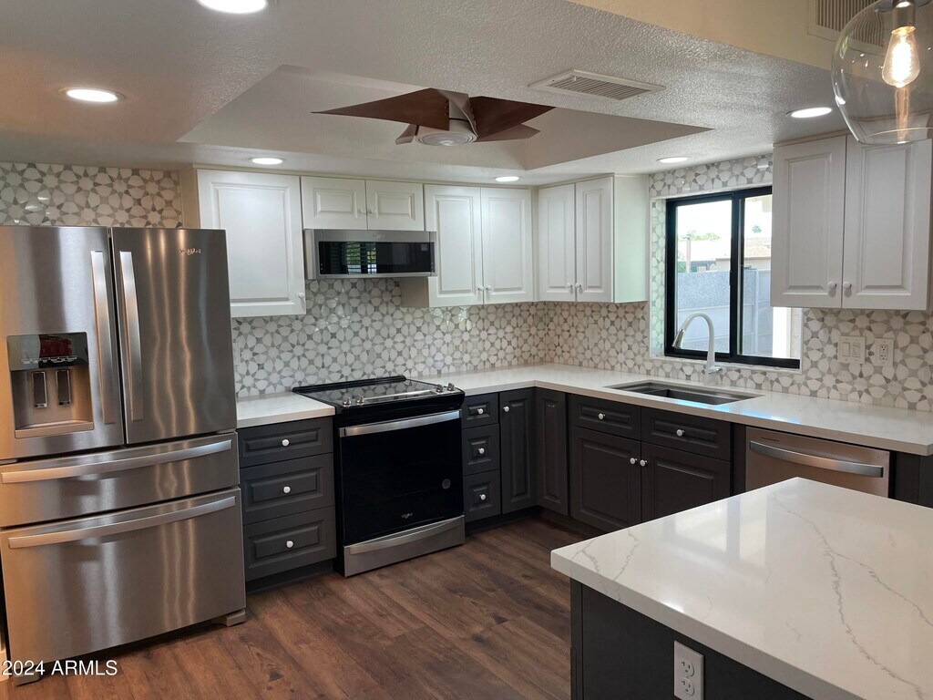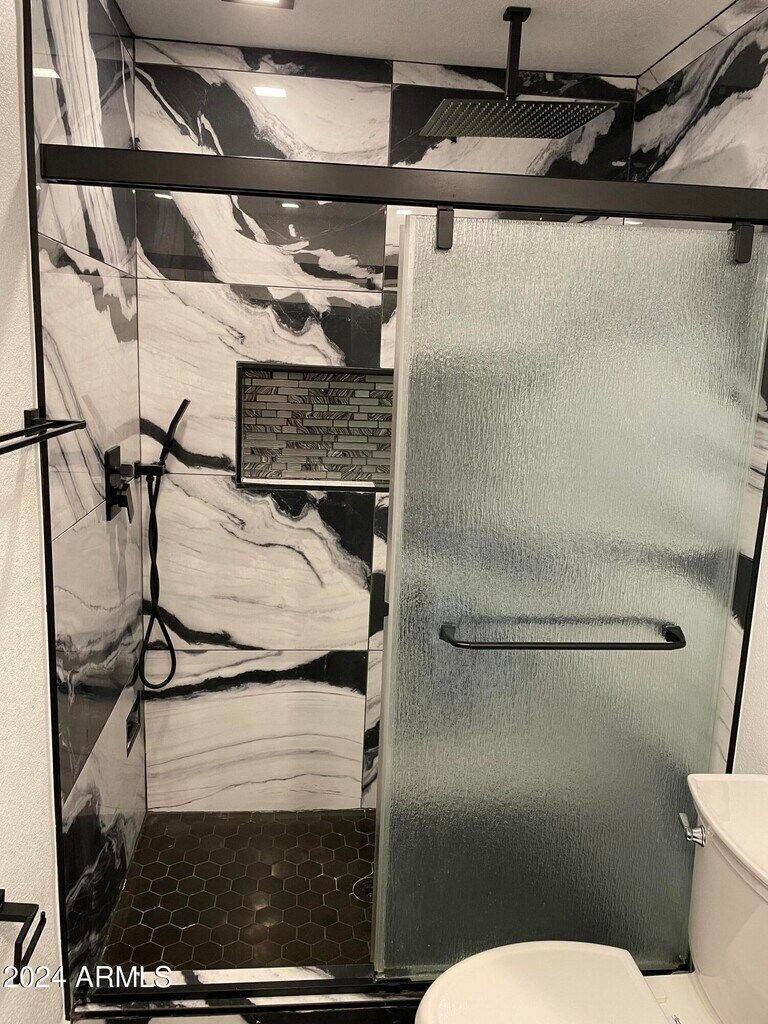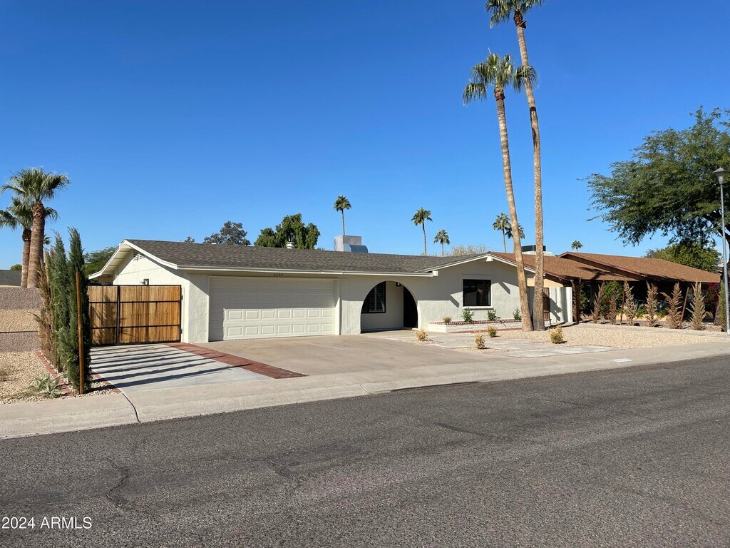 Full Remodel! You are going to love this 4 bed,2 bath contemporary home in the perfect location! Walk into wood plank flooring,a huge living area,stacked stone,wood burning fireplace and lots of natural light! Kitchen has stainless appliances,quartz counters,deco-tile backsplash,gray and white cabinets,pendant lighting,and tons of designer fixtures. Secondary bedrooms good sized with ample closet space and ceiling fans. Hall bath has unique custom tile and custom vanity. Master with private exterior entrance,en-suite bath remodeled in mid-century décor including floating vanity,art deco shower and all modern finishes. Walk outside to a huge lot,covered patio,storage shed,tons of grass and an RV gate as well! Centrally located and close to all Phx has to offer!