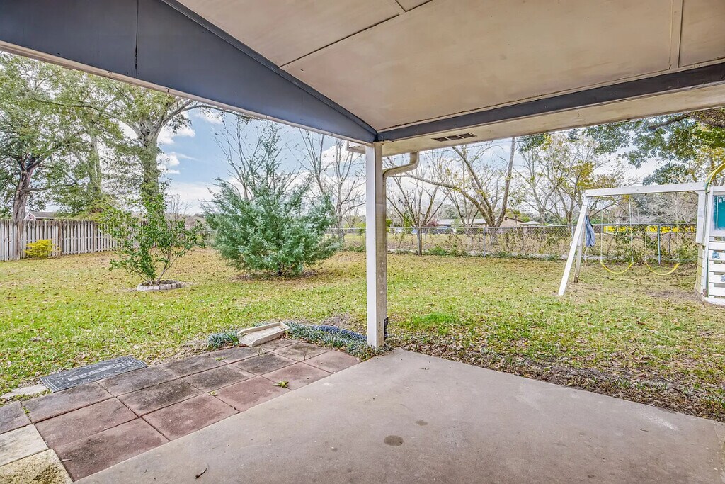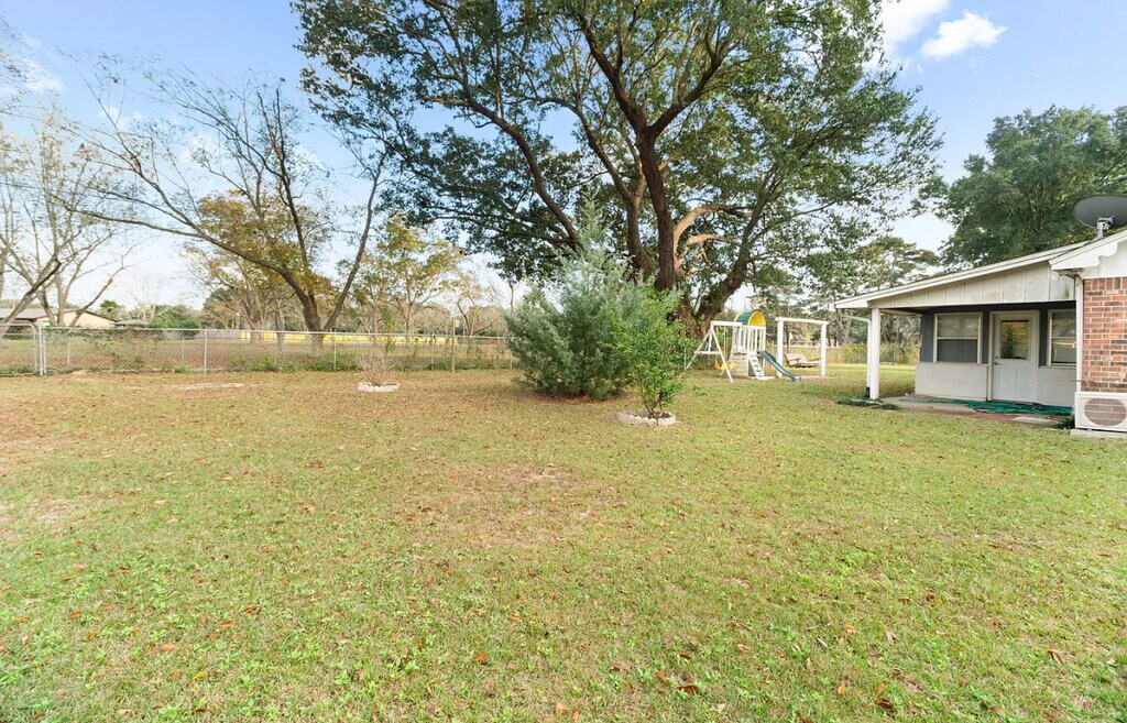 At the end of a quiet cul-de-sac, this inviting Pace home sits on nearly half an acre and offers space, charm, and features you do not come across every day. The layout includes two separate living areas, a formal dining room, and a cozy real wood-burning fireplace that creates a warm and welcoming centerpiece. The kitchen has been refreshed with all new appliances, and the laundry room is equipped with custom built-ins for effortless organization. Natural light pours into the expansive Florida room, wrapped in windows and designed to connect the indoors with the outdoors. Step outside to a backyard that feels like your own private orchard. Lining the back fence are mature fruit trees and bushes, including lemon, lime, fig, pear, plum, and blackberry. The outdoor space also features a playset, built-in swing, and two covered porches, making it perfect for relaxing, entertaining, or enjoying the land year-round. Quarterly pest control included.