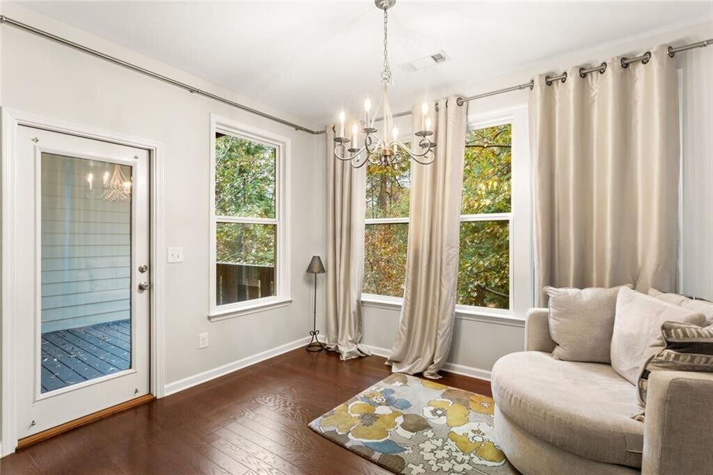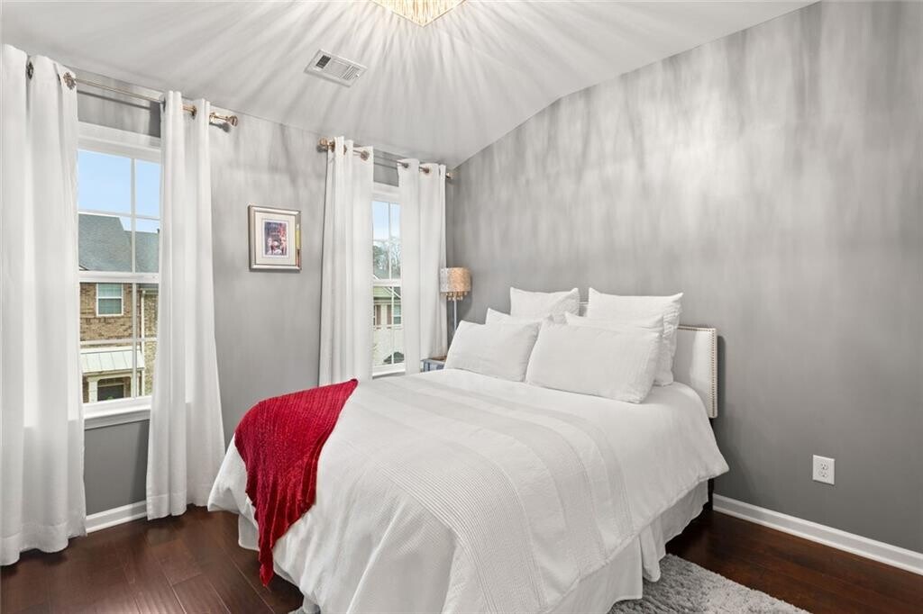 Welcome to this beautifully updated end-unit townhouse in the highly sought-after Smyrna area! Perfectly situated with convenient access to shopping,grocery stores,parks,the Silver Comet Trail,restaurants,and major interstates,this home offers both comfort and an unbeatable location. As a former model home,this spacious end unit features additional windows and extra square footage,filling the space with natural light and offering serene,tree-lined views. Inside,you’ll find new hardwood flooring throughout,elegant plantation shutters,and a thoughtfully updated kitchen complete with Whirlpool Gold stainless steel appliances,high-end cabinetry,upgraded countertops,and a stylish new backsplash. The kitchen opens to the dining room and living room,which leads to a sunroom. A deck or patio is available on every level. In addition to the primary bedroom,you'll find two more secondary bedrooms,a full bath,and a laundry room. The oversized primary suite is a true retreat,featuring electric blinds and a beautifully renovated primary bathroom. This spa oasis has sleek counters,cabinets,and tile,while the soaking tub highlights the relaxing environment. The finished terrace level adds incredible flexibility with a bonus room,bedroom,and full bath—perfect for guests,a home office,or entertainment space. Enjoy outdoor living with green space just behind the home,along with the convenience of a two-car garage plus additional storage. Curtains,washer and dryer are included with the rental. This move-in-ready gem combines modern updates,generous space,and a prime location—don’t miss your opportunity to call it home! MLS ID 7750117