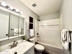 Great location!!! This UNFURNISHED home is located in a very quiet complex near great schools,shopping and entertainment areas. It's a very walkable area with everything within about a mile of your home. Open floorplan with lots of storage. 3 bedrooms and 2 baths upstairs. Interior washer and dryer. The home has a large exterior covered patio area and 2 covered parking spaces immediately behind the unit.