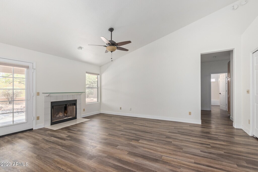 Ronit UrmanStep inside to a bright, open floorplan defined by soaring vaulted ceilings and elegant finishes. The living area centers around a cozy fireplace, and abundant pot‑shelves add architectural character. The gourmet‑style kitchen boasts stainless appliances, a center island, and a sunny breakfast nook with a bay window - ideal for casual dining or morning coffee. Relax or entertain in the south‑facing backyard oasis, where lush landscaping backs to a natural wash for added privacy and serenity. The yard is desert‑scaped front and back, low‑maintenance and perfectly suited for Arizona living. Three‑car garage provides ample space, and the home also includes newer vinyl/wood‑plank flooring, updated hardware and light fixtures - just move in and enjoy.