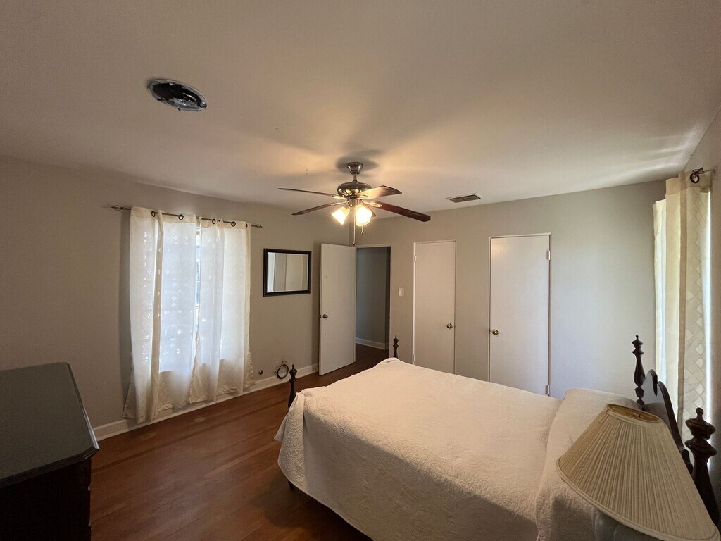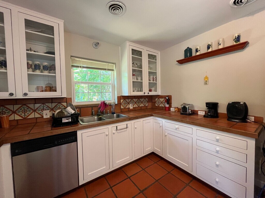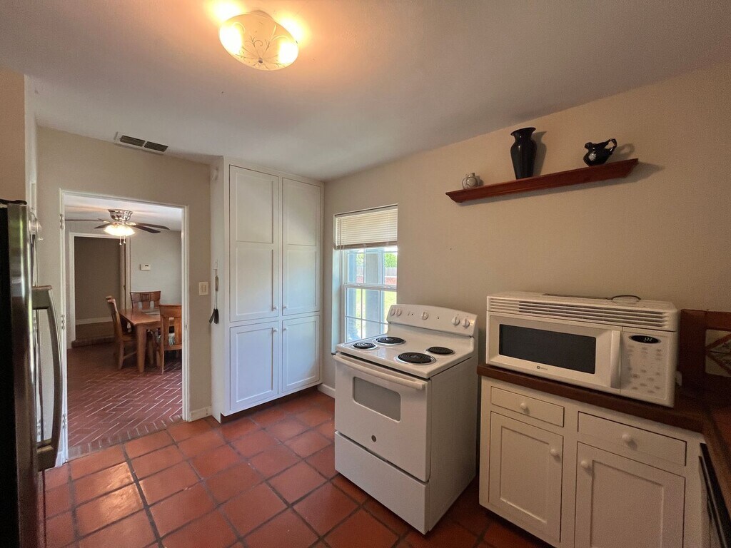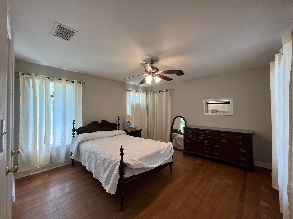 Two bedroom one bath house in the front and an apartment with one bedroom one bath tucked away in the back of the property in Alameda Estates. Living room with Saltillo tile, decorative stone fireplace, and ceiling fans throughout. Step down into the dining room with brick tile in a herringbone pattern and lots of windows that overlook the oversized backyard. Just off the dining room, you will find the kitchen with glass front cabinets up top, decorative backsplash, double basin sink, and separate pantry cabinets. Two spacious bedrooms with lots of windows that allow for plenty of natural light to fill the rooms feature ceiling fans and hardwood floors. You will find one bedroom overlooks the front yard and a second overlooks the backyard. Bathroom boasts both a tub and a separate stand up shower. Front unit has a closet with washer and dryer connections for a stackable set. Back apartment efficiency equipped with a glass cooktop range/oven, cabinet space, double basin sink, and washer and dryer connections. Bathroom with tub shower combination. Located within walking distance or short drive to Ocean Drive, HEB Grocery, restaurants, shopping, and much more. Call a Realtor today to schedule a showing.