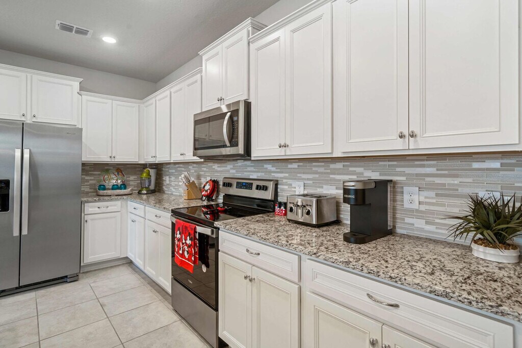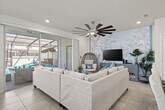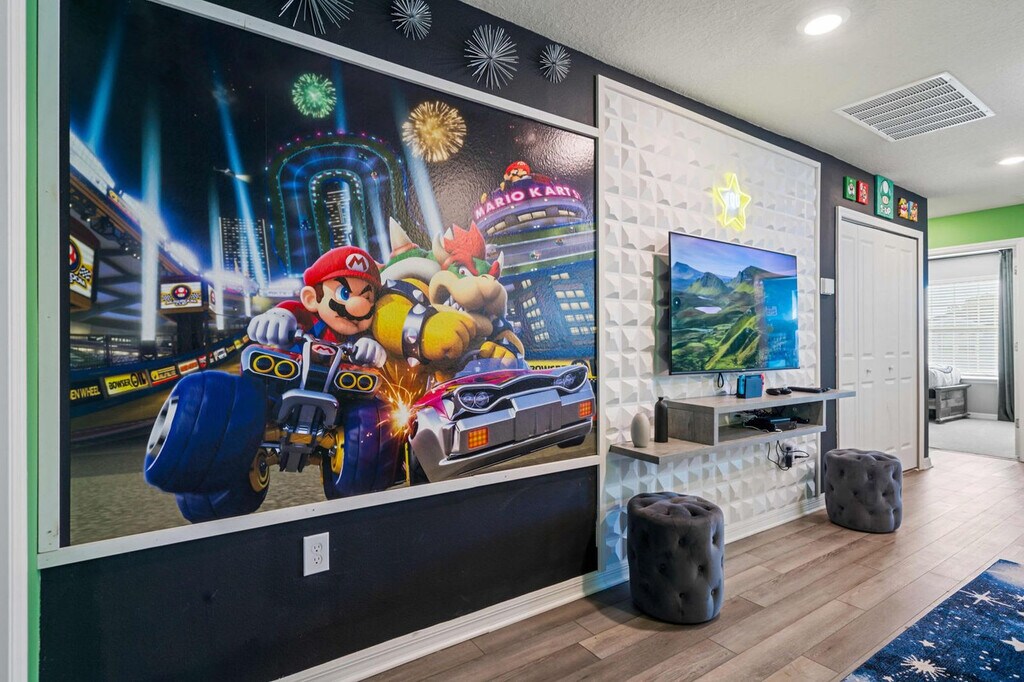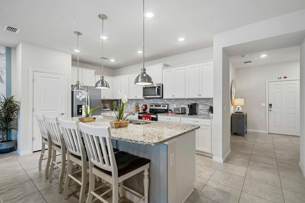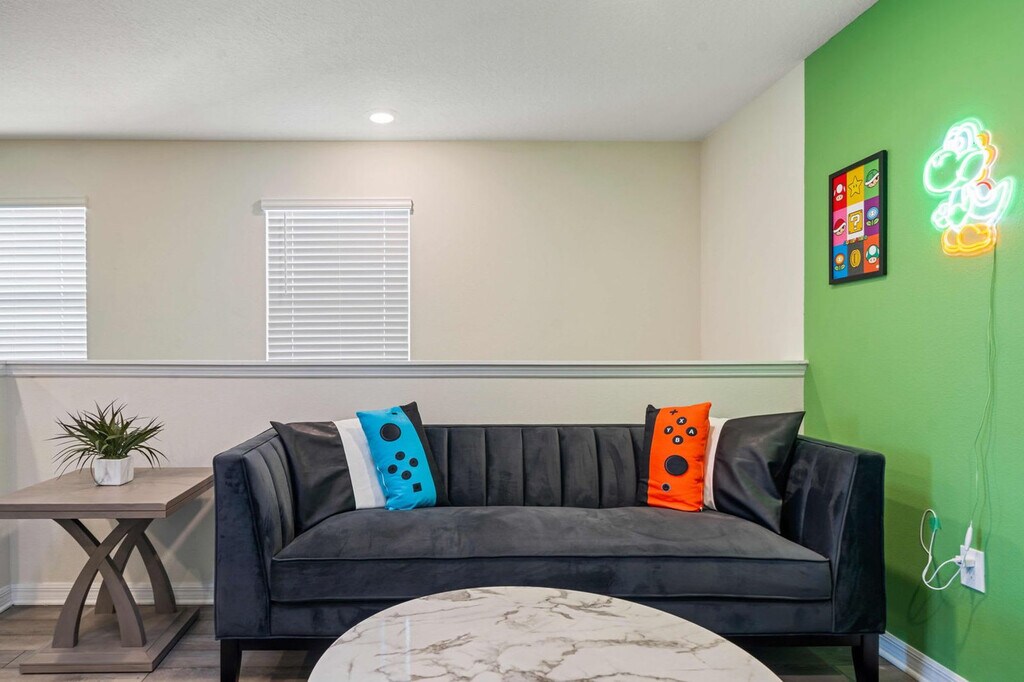 Immerse yourself in the allure of Florida's favorite attractions while feeling at home in this thematic 5-bedroom villa, nestled in Davenport's elite Windsor Island. This luxury haven, minutes away from Disney World, is ideal for groups seeking a charismatic blend of fun, relaxation, and a touch of magic! This luxuriously designed villa offers a modern kitchen, fully equipped for all your culinary endeavors with stainless steel appliances, elegant finishes, and a BBQ grill. Non-stop entertainment continues in the game room boasting arcade-style games, and a home gym is available for fitness-conscious guests. The villa also offers a spacious living room for family gatherings, an in-house washer/dryer, and contemporary essentials. Enjoy free pool heating during November and ample free street parking. Located within the gates of the world-renowned Windsor Island Resort, this villa is perfectly situated just a short 10–15 minute drive to Disney World and close to Universal Studios, SeaWorld, and Orlando’s top attractions. Grocery stores, cafés, and shopping centers are within a few minutes’ drive, and Orlando International Airport (MCO) is about 35–40 minutes away. Quiet hours are between 9:00 PM and 9:00 AM. Please be courteous to the homes and guests around you and be conscious of damage and leaving the AC on when the back patio door is open. Includes a dedicated workspace. [SI]