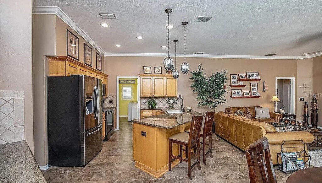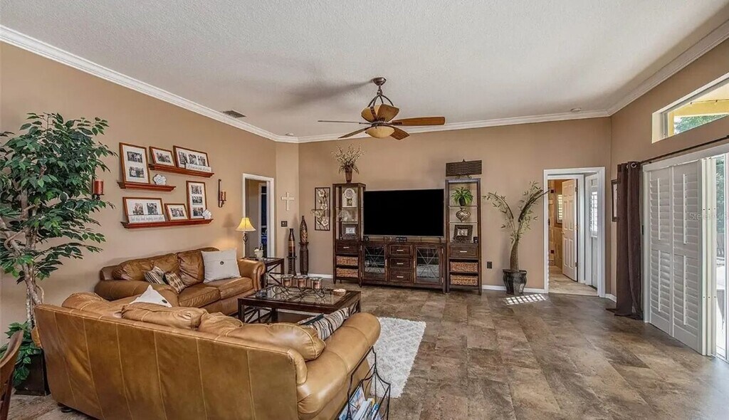Experience Florida living in this beautiful unfurnished 4 bedroom, 3 bathroom pool home with 3-car garage, set on a .37-acre lot with pond and nature views in the sought-after River Village Estates community. Entertain in the large bonus/game room with 8-ft slate pool table, ceiling fan, and disco ball Enjoy outdoor living with pool, patio, and outdoor kitchen Gourmet kitchen with granite countertops, wood cabinetry, breakfast bar, and built-in coffee bar Luxury master suite with garden tub, dual sinks, and separate shower Modern comforts including smart thermostat, keyless entry, ceiling fans, and whole-house water filtration Fenced yard with firepit, ideal for entertaining. Rent includes: Lawn care, pool service, HOA fee, trash & recycling, washer & dryer Pets: Up to 2 dogs allowed (sorry no cats) with pet security deposit and monthly pet rent Contact us now for a private showing!!