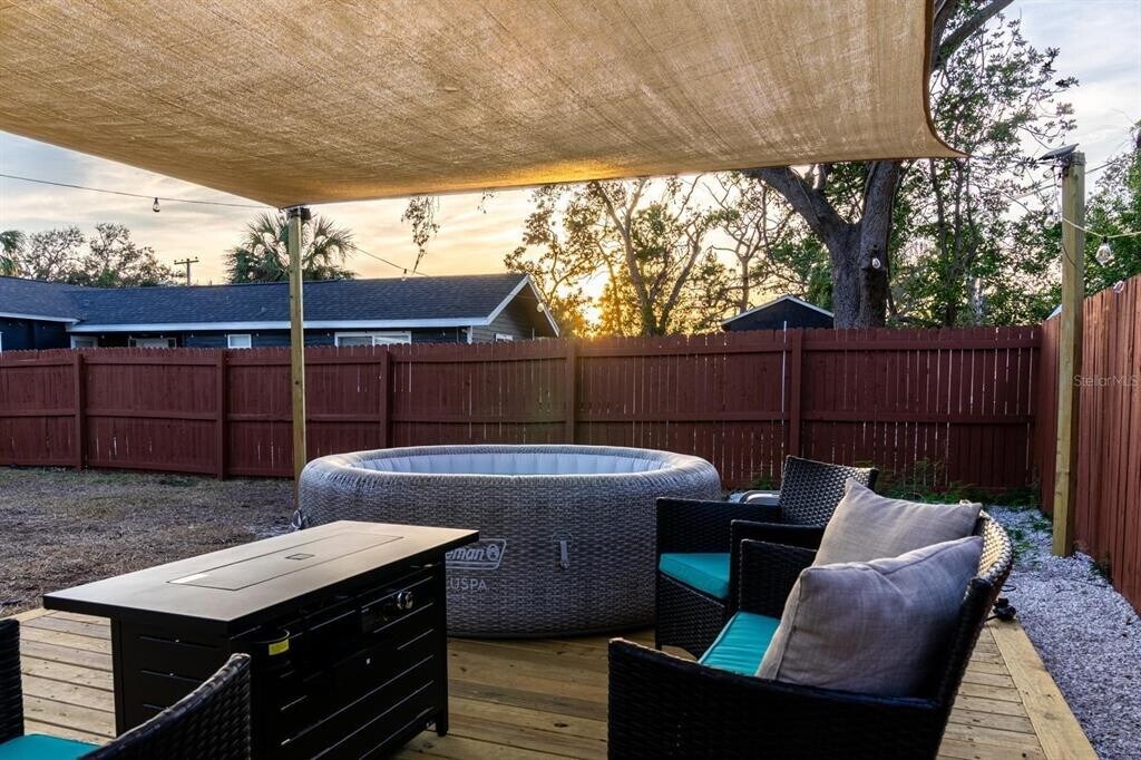MOVE-IN READY! Charming Renovated Bungalow Near Pinellas Trail! Welcome to this beautifully renovated 2-bed,1-bath home,perfectly blending modern updates with classic charm. Furnished house,allowing for a seamless transition into your new space. This cozy home boasts all NEW APPLIANCES,including a Stove,Dishwasher,Microwave,Refrigerator,Water Heater,and Roof—all updated and renovated in for your convenience and peace of mind. The open backyard,with a fence that ensures your privacy,is fully furnished so you can enjoy peaceful and relaxing evenings on the deck,in the hot tub,and at the private BBQ. ready for your creative ideas to come to life! Recent neighborhood updates include freshly paved city streets and beautiful Child's Park with tennis and basketball courts,and a beautiful waterview boardwalk over looking the pond. One of the standout features of this home is its proximity to the famous PINELLAS TRAIL! Enjoy a total 45 miles of scenic paths for Biking,Skating,or Walking from Dunedin to downtown St Pete less than 1 block away! Whether you're heading to the waterfront restaurants and entertainment of charming Gulfport or the vibrant atmosphere of Downtown St. Pete,you're just minutes away from some of the best spots in the area. Plus,you're only 6 minutes from I-275,making it easy to get anywhere in the Greater Tampa Bay area. With a cozy,turnkey interior. Very close to universities and hospitals,in case you're looking for a place near your work or school. The occupants' CREDIT HISTORY and BACKGROUND are checked. DON'T MISS OUT ON THIS GREAT OPPORTUNITY—BOOK YOUR VISIT TODAY. MLS# TB8493360