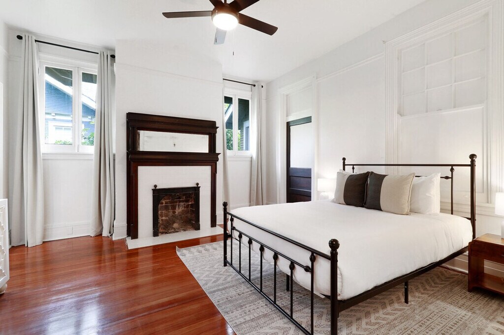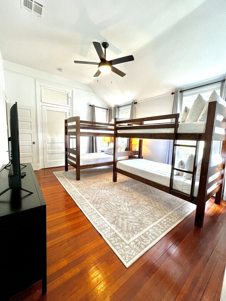 Step into luxury as you enter this beautifully designed home featuring 4 bedrooms and 2.5 bathrooms. The interior offers classic architecture, high ceilings, hardwood floors, and stylish decor throughout. The living area is perfect for gatherings, with ample seating, a fully equipped kitchen with modern appliances, and a dining area where you can enjoy meals together. Whether you're here for Mardi Gras, festivals, or simply to soak in the vibrant culture, this home is ideal for your stay. This property has 4 total bedrooms with 7 beds and 2.5 bathrooms. The master bedroom features a king-size bed, the second bedroom has a queen-size bed, the third bedroom includes 2 twin-size bunk beds (4 total beds), and the fourth bedroom has a queen-size bed. The master and the second bedroom share a full bathroom with a standing shower and double sinks. The third and fourth bedrooms share the second full bathroom with a tub/shower combo. The half bathroom is situated down the hall between the four bedrooms. Guests can park 1 vehicle on the front lawn. Please make sure to park in the designated parking space for the property, which is the address for the property. Guests will have access to the entire home, making it a perfect base for exploring the vibrant local culture and festivities. Do not park in or block the driveway. The thermostat is located in the laundry area past the dining room. Registration Number: 22-CSTR-17714, 22-OSTR-17719 [SI]