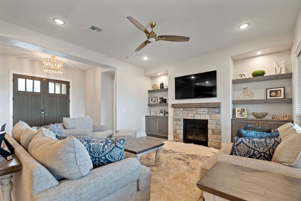 Welcome to this stunning 4-bedroom, 3 full bath, and 2 half bath home that blends comfort, style, and modern convenience. Situated on a spacious 1-acre lot, this property offers room to relax, entertain, and enjoy every detail of luxury living. Step inside to find soaring vaulted ceilings, a cozy fireplace, and a bright open floor plan. The gourmet kitchen features sleek quartz countertops, a wine rack, and plenty of space to gather. Two master suites offer flexibility and privacy, while a Jack & Jill bathroom connects two additional bedrooms. The finished basement expands the living space with a kitchenette—perfect for entertaining or extended stays. Outdoors, enjoy a covered patio overlooking the expansive lot, ideal for evening gatherings or quiet mornings. Additional highlights include a 3-car garage, walk-in closets, central air and heating, and a state-of-the-art security system for peace of mind. This home truly has it all: modern amenities, thoughtful design, and a setting that provides both space and comfort. No cats, dogs negotiable