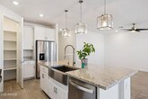 Welcome to this modern 4-bedroom,2-bathroom home in San Tan Valley,built in 2024! Enjoy an open layout with a bright kitchen featuring stainless steel appliances,a large island,and plenty of storage. The primary suite offers a walk-in closet and private bath,while the additional bedrooms provide space for family,guests,or a home office. Conveniently located near parks,schools,and shopping,with Queen Creek Marketplace and San Tan Mountain Regional Park just a short drive away.